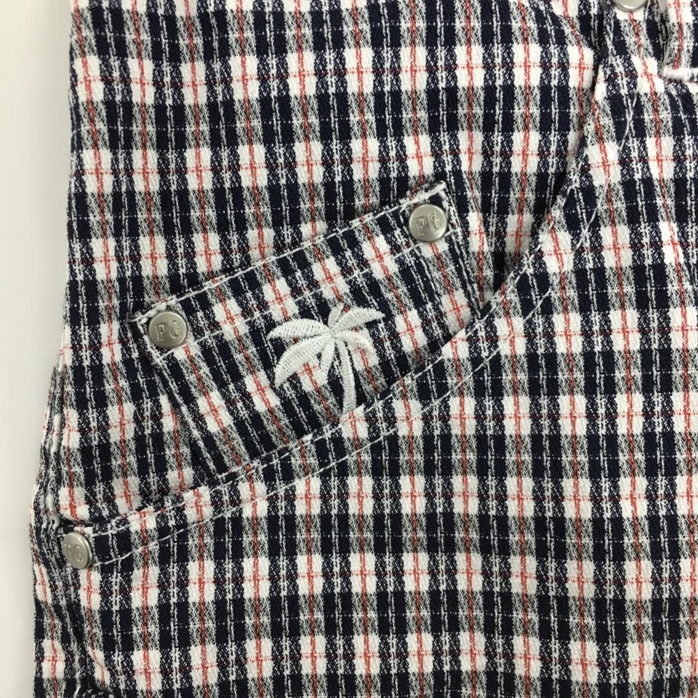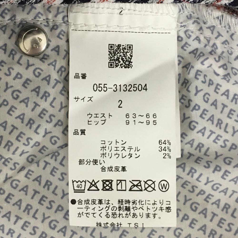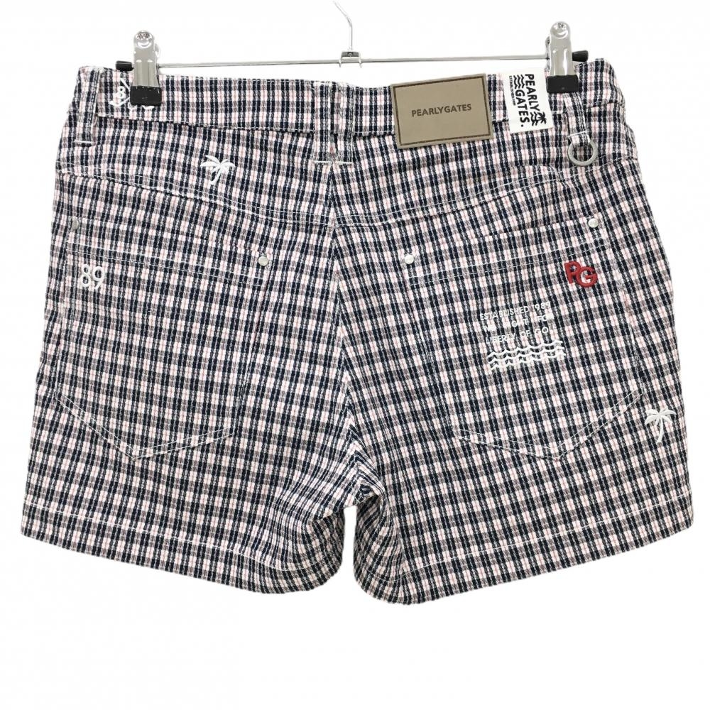 【超美品】パーリーゲイツ ショートパンツ 白×黒 チェック ヤシの木刺しゅう レディース 2(L) ゴルフウェア 2023年モデル PEARLY GATES
