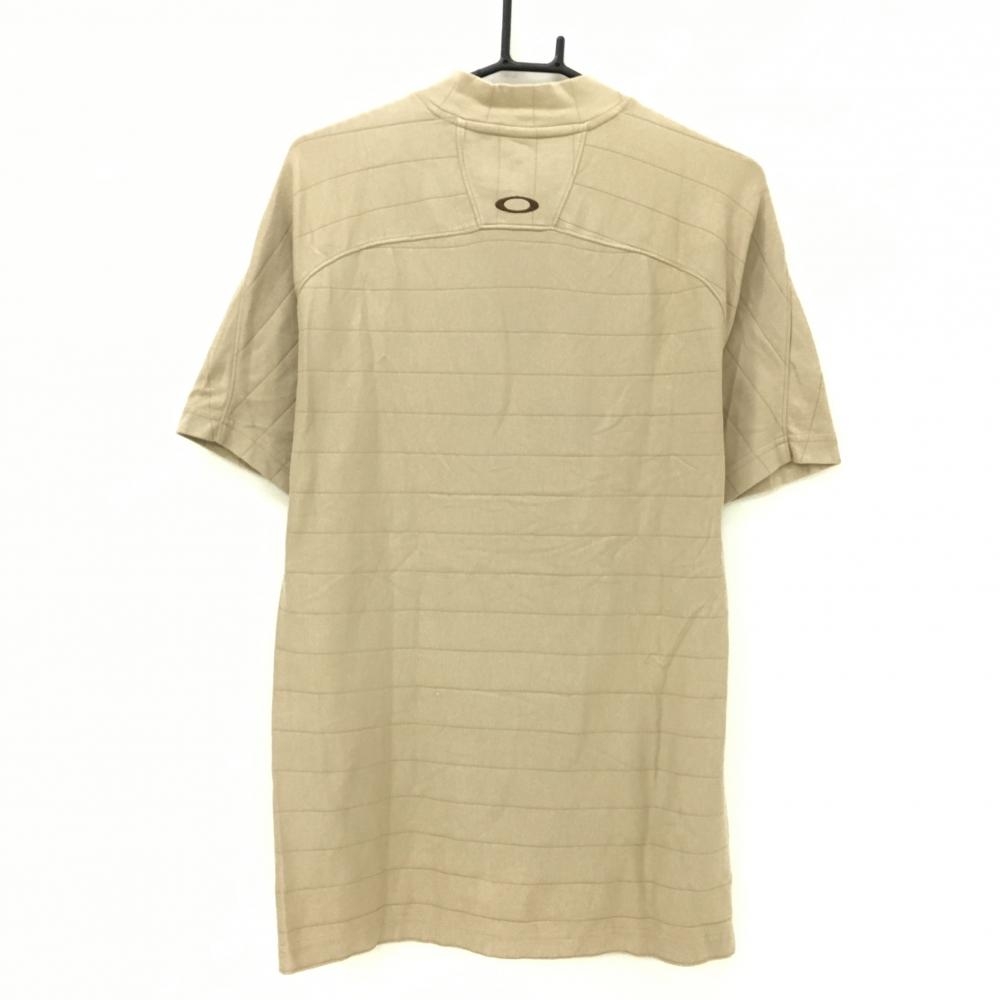 オークリー 半袖ハイネックシャツ ベージュ 立体ロゴ ハーフジップ メンズ M ゴルフウェア Oakley