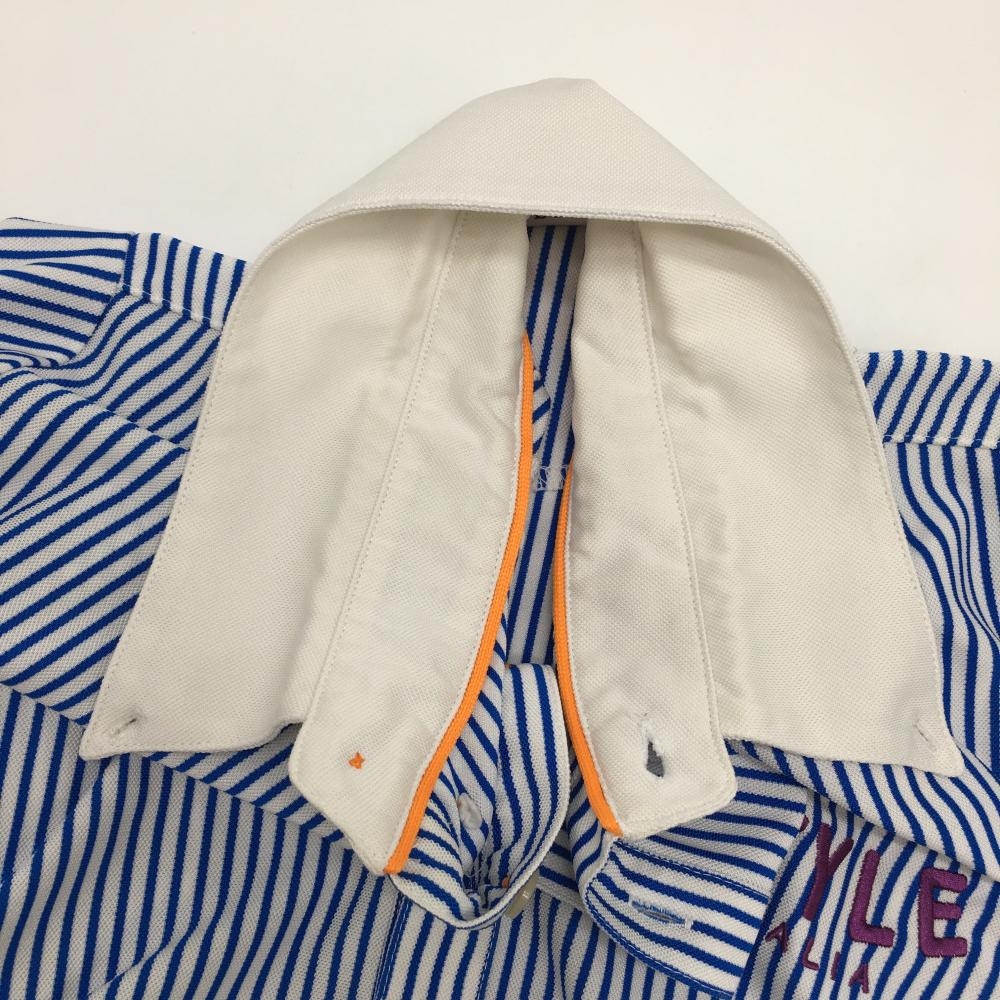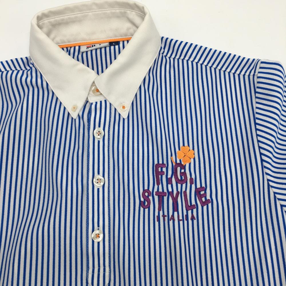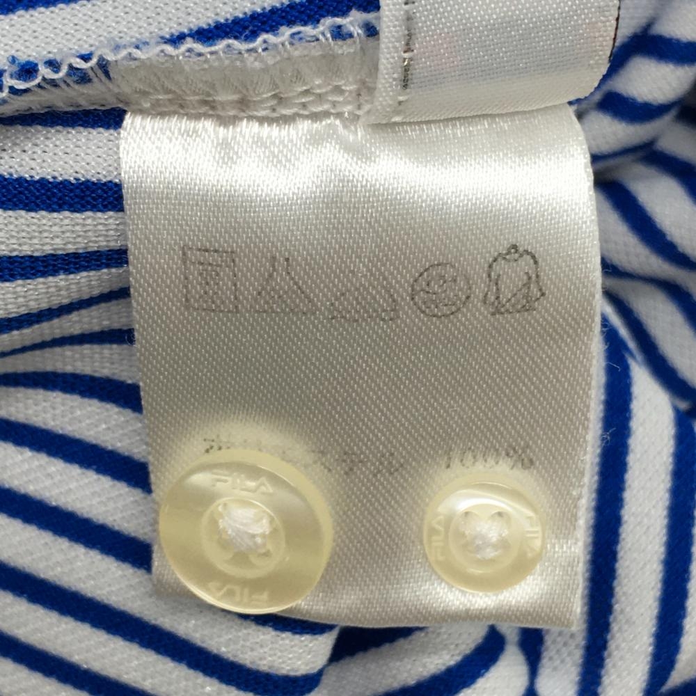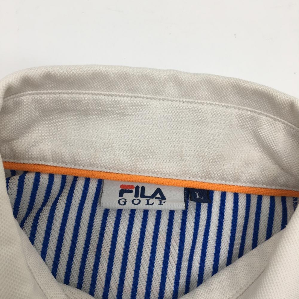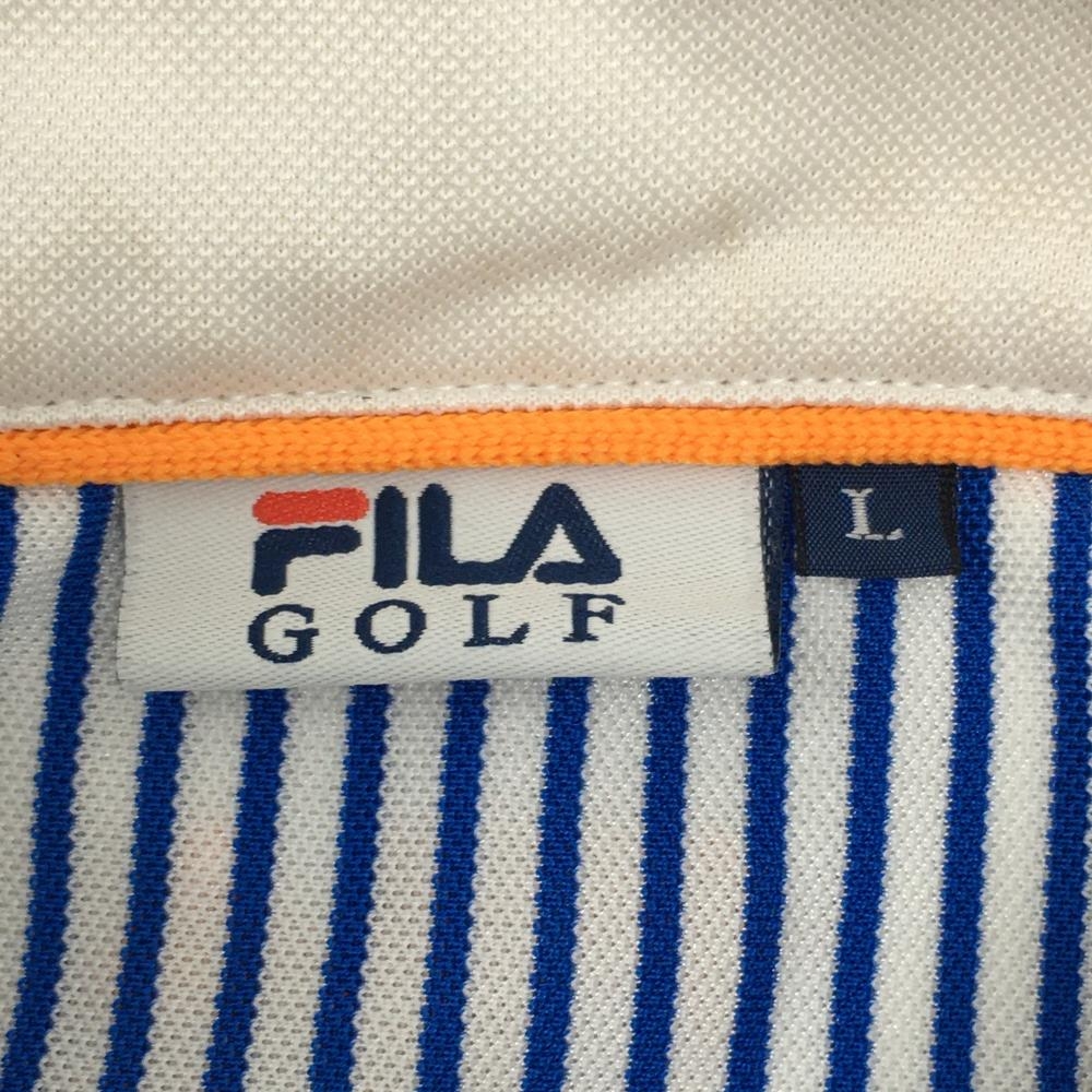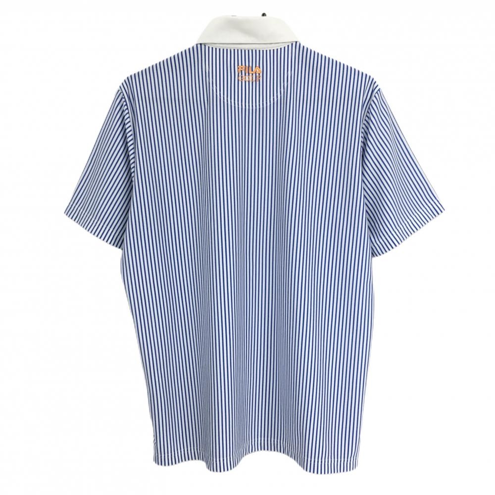 フィラゴルフ 半袖ポロシャツ 白×ブルー ストライプ 胸元刺しゅう ボタンダウン メンズ L ゴルフウェア FILA GOLF