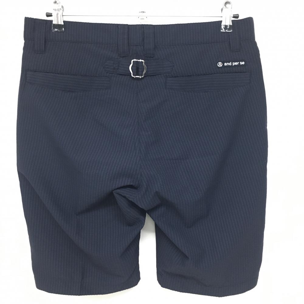 【超美品】アンパスィ ハーフパンツ ネイビー ストライプ地模様 メンズ 82 ゴルフウェア and per se