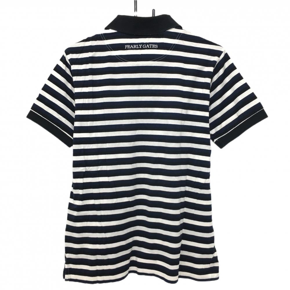 パーリーゲイツ 半袖ポロシャツ 白×黒×ネイビー ボーダー 胸ポケット メンズ 6(XL) ゴルフウェア PEARLY GATES