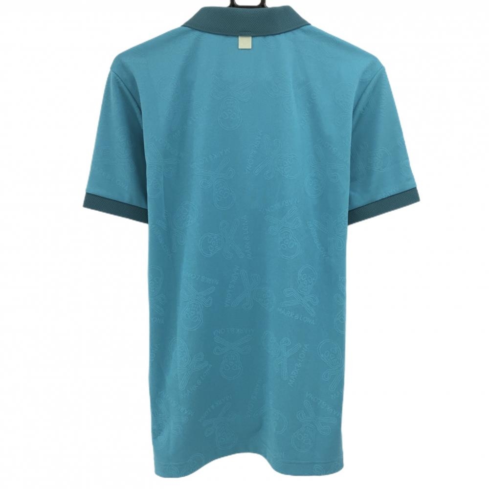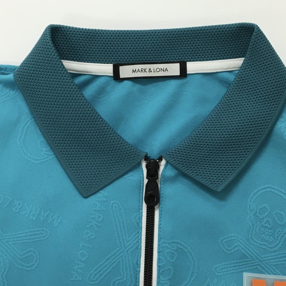 【超美品】マークアンドロナ 半袖ポロシャツ ライトブルー スカル地模様 ハーフジップ メンズ 50(XL) ゴルフウェア MARK&LONA
