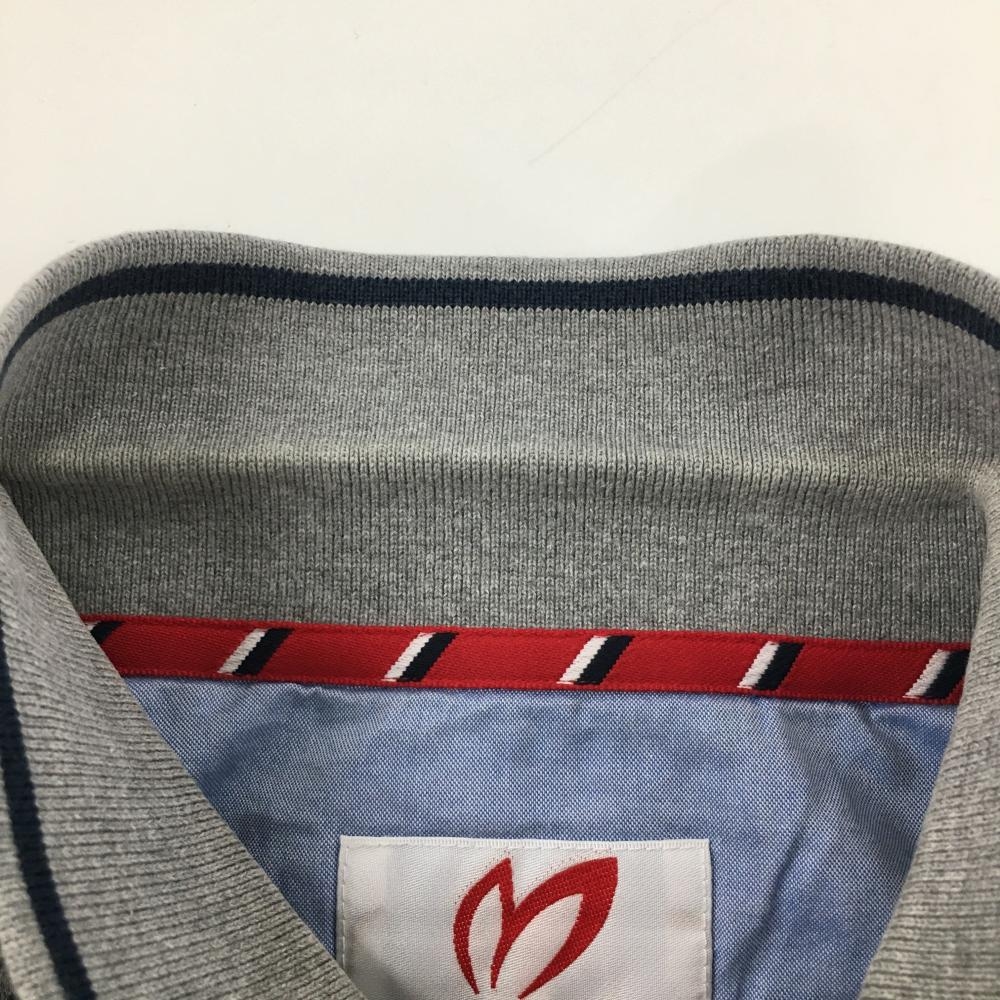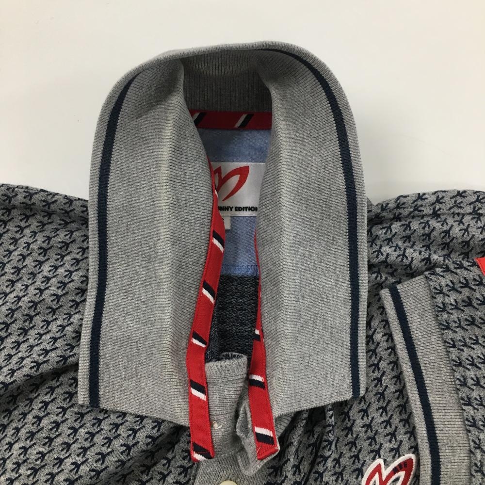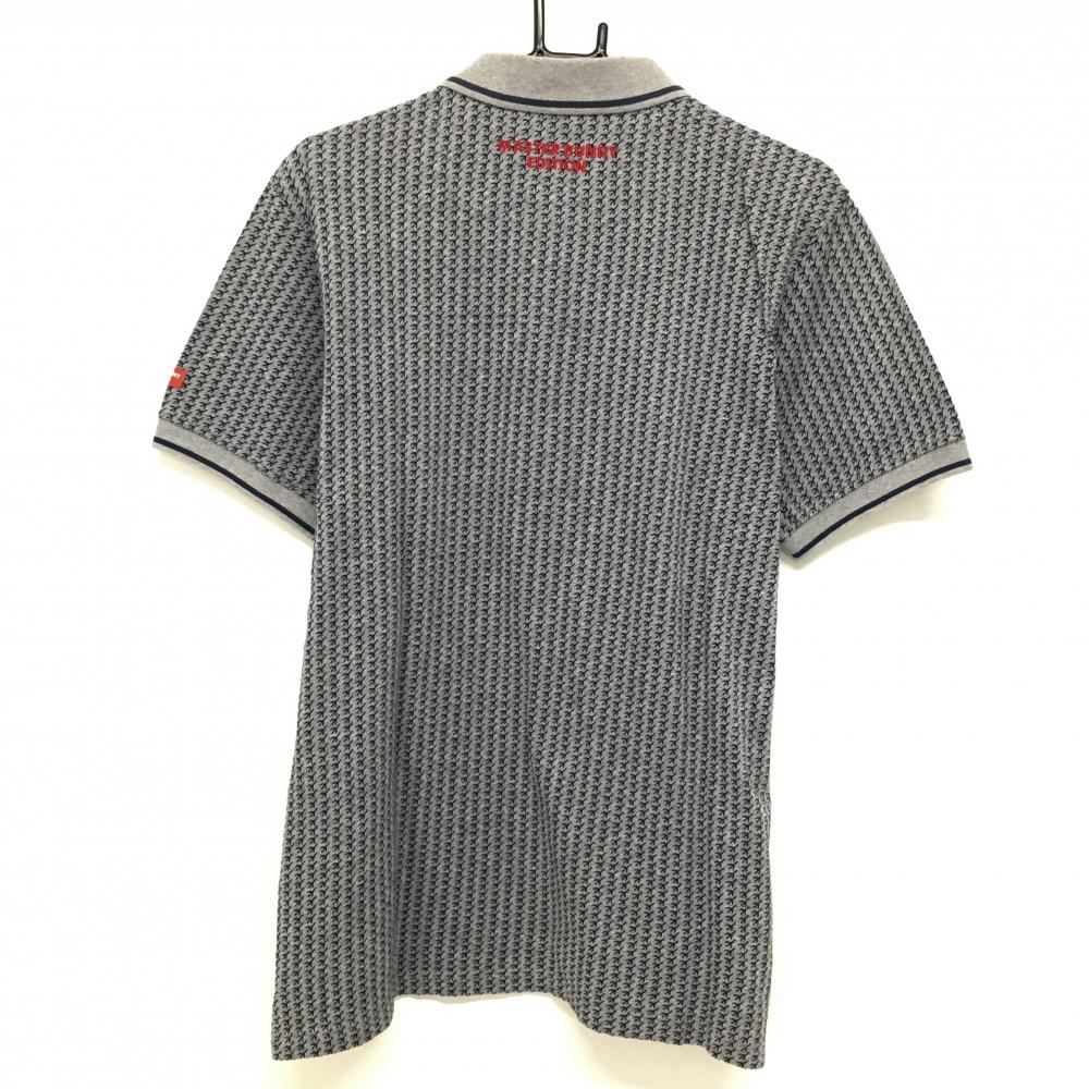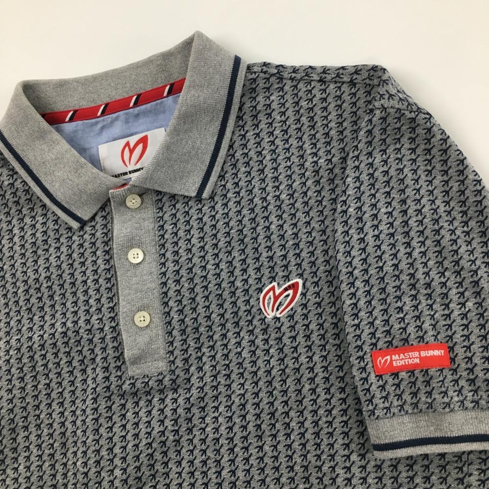 マスターバニー 半袖ポロシャツ グレー×ネイビー 総柄 メンズ 6(XL) ゴルフウェア MASTER BUNNY EDITION