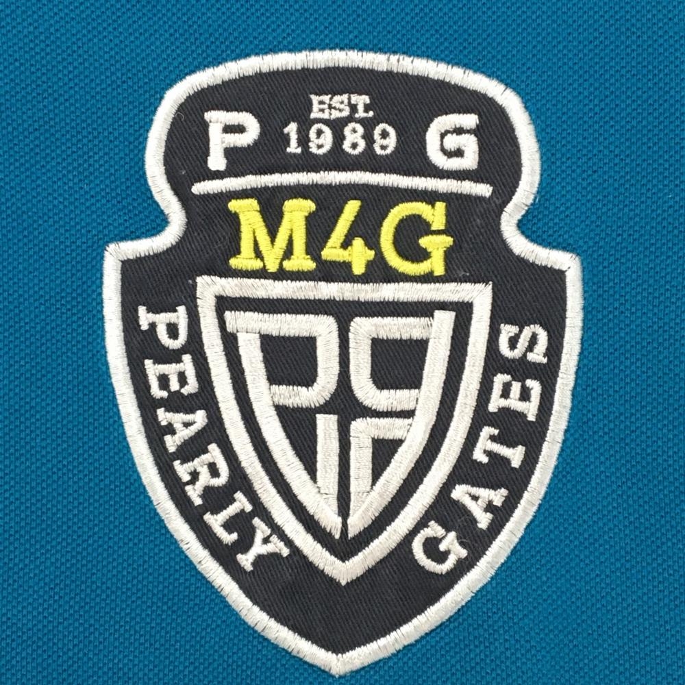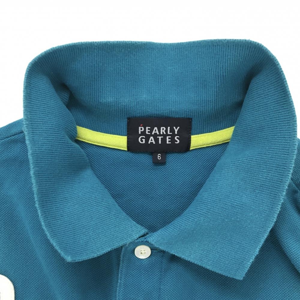 パーリーゲイツ 半袖ポロシャツ ブルーグリーン フェルトワッペン メンズ 6(XL) ゴルフウェア PEARLY GATES
