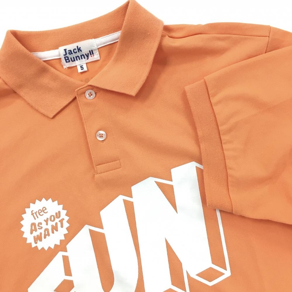 ジャックバニー 半袖ポロシャツ オレンジ×白 フロントプリント メンズ 5(L) ゴルフウェア Jack Bunny