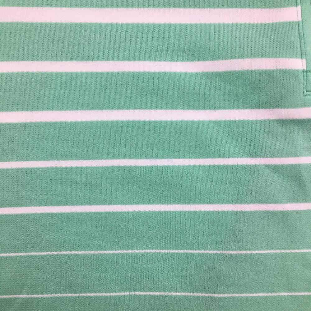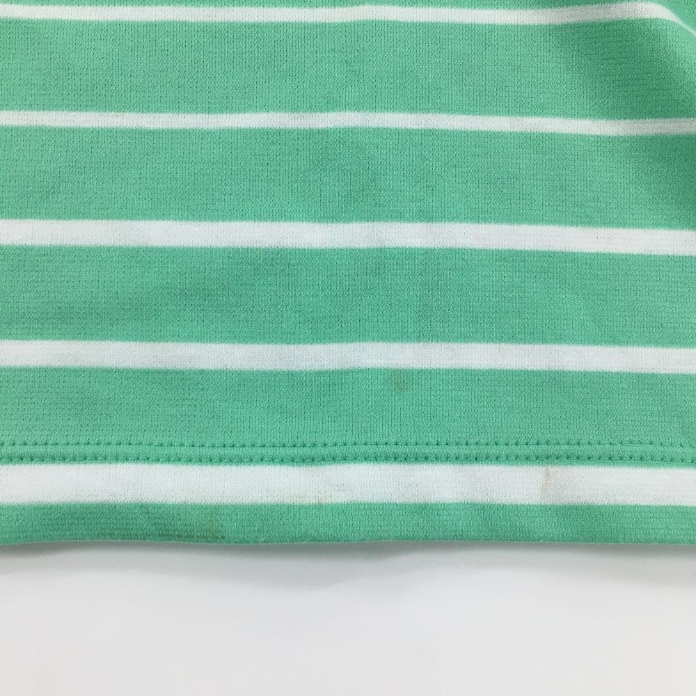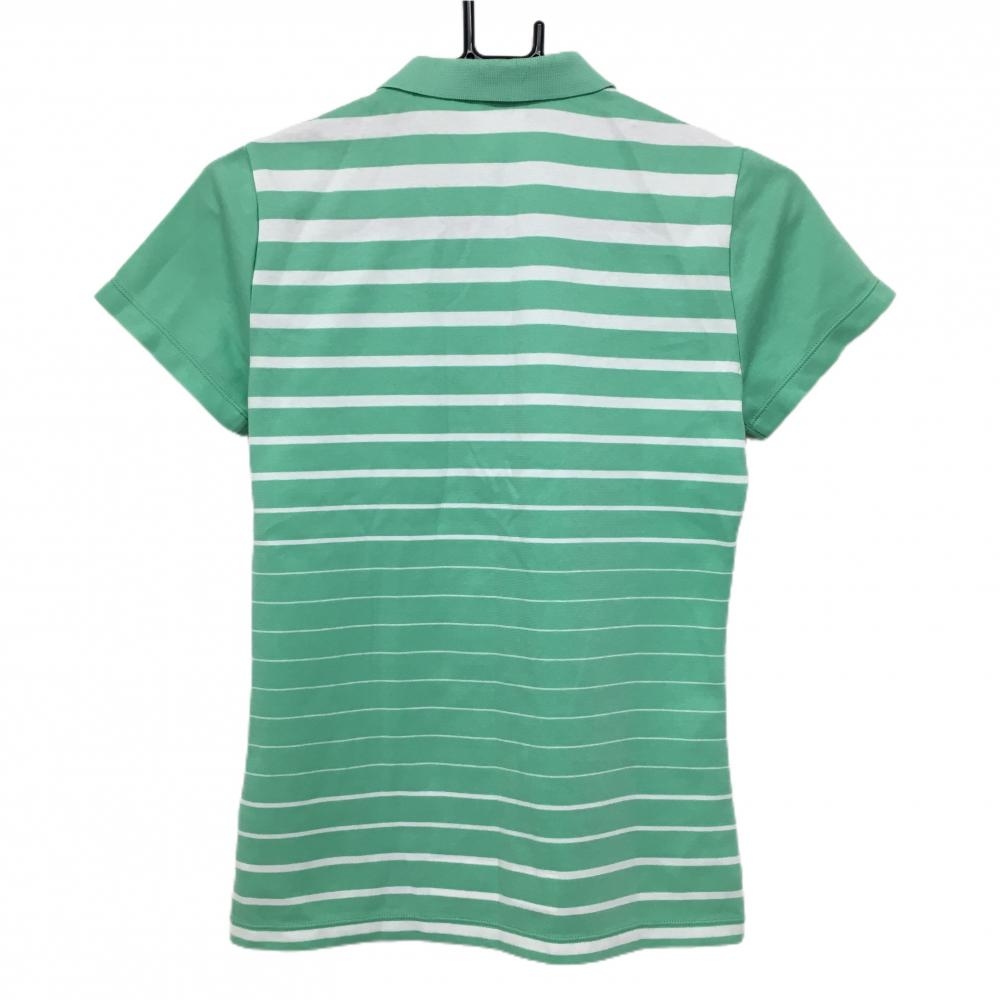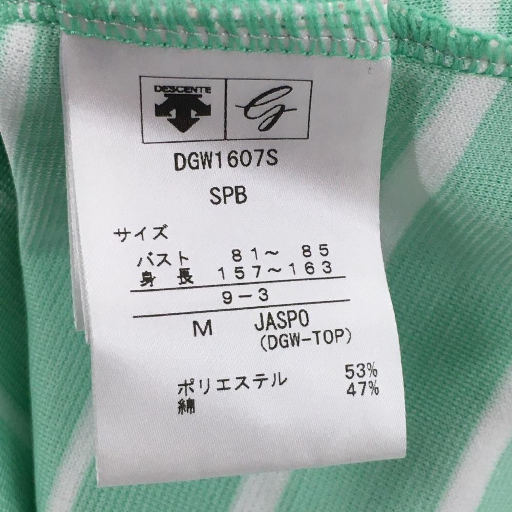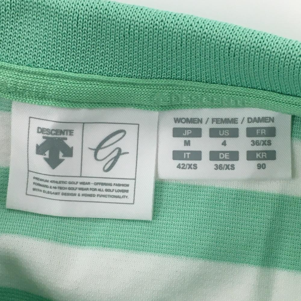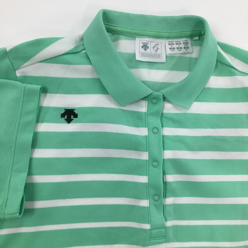 【美品】デサントゴルフ 半袖ポロシャツ ミントグリーン×白 ボーダー柄 肩ロゴ スナップボタン レディース M ゴルフウェア DESCENTE