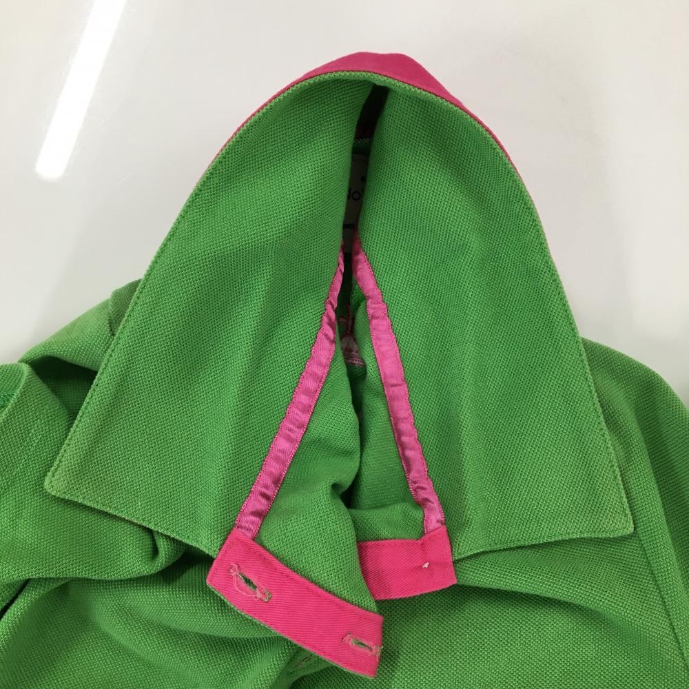 サマンサタバサNo.7 半袖ポロシャツ ライトグリーン×ピンク バック刺しゅう レディース 38(M) ゴルフウェア Samantha Thavasa