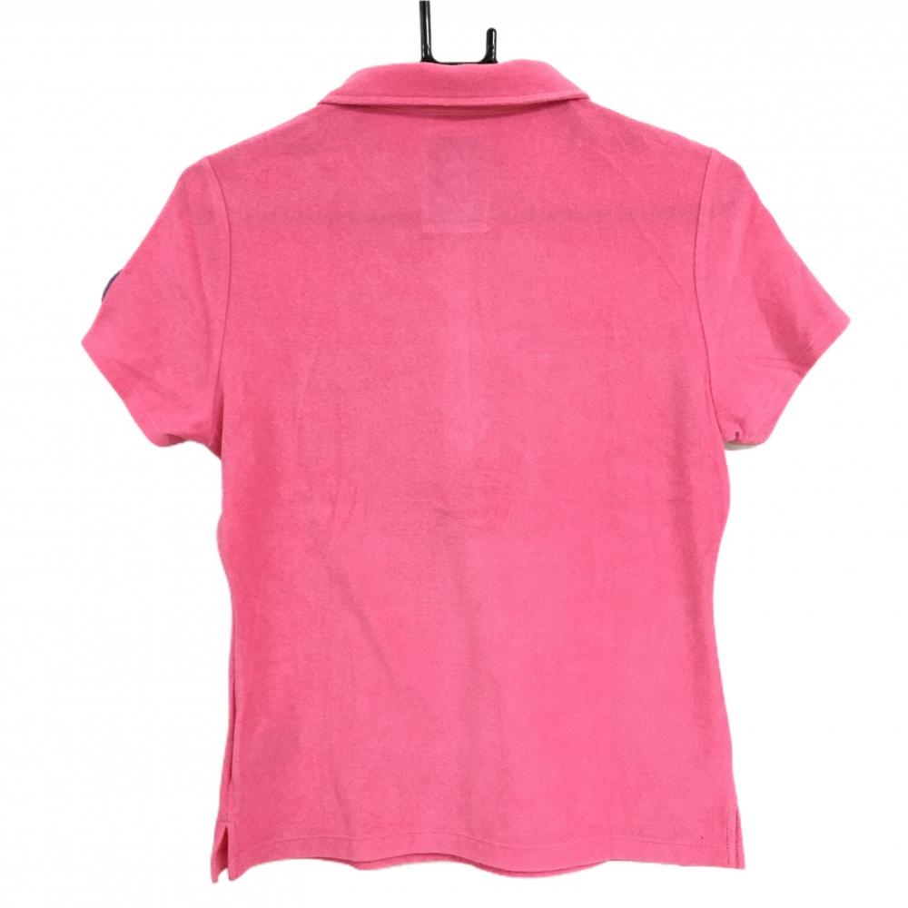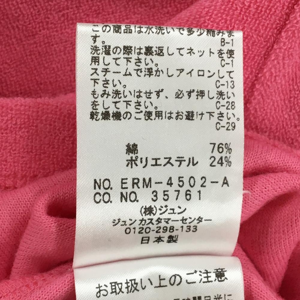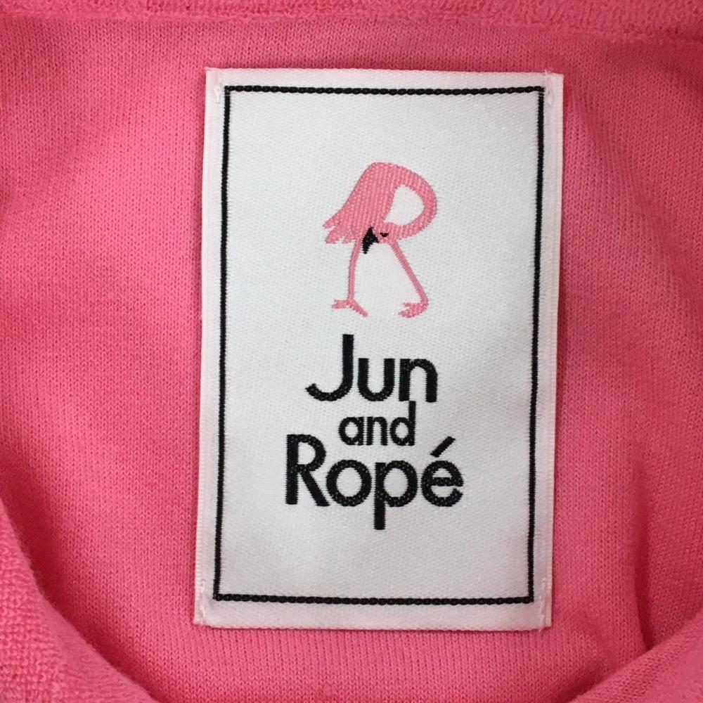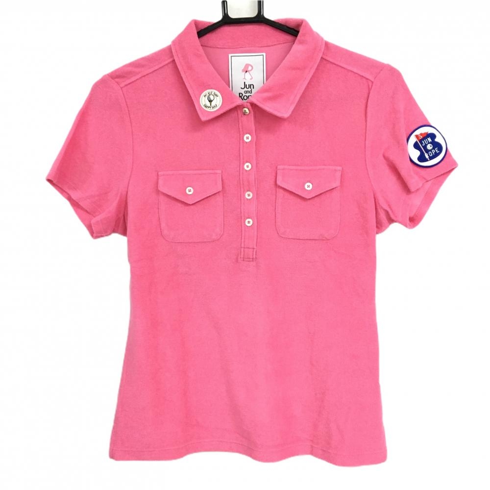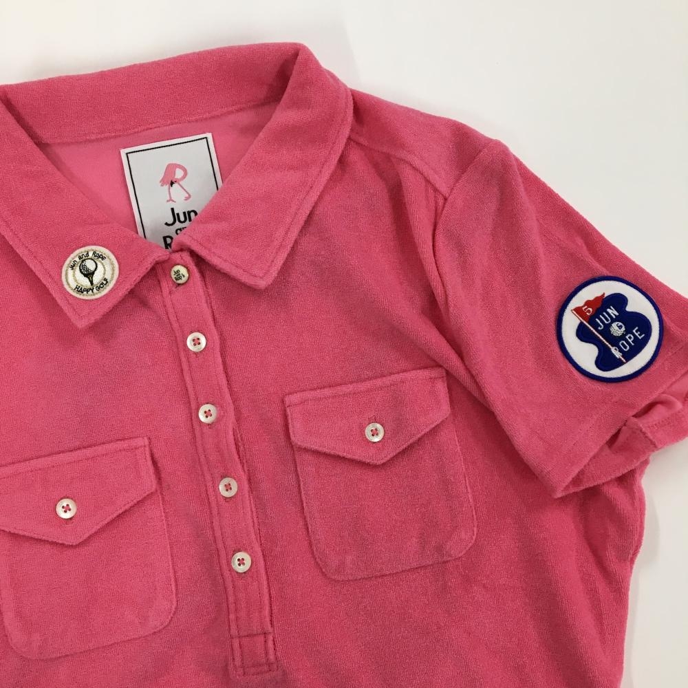 【美品】ジュンアンドロペ 半袖ポロシャツ ピンク パイル地 袖ワッペン レディース L ゴルフウェア JUN&ROPE