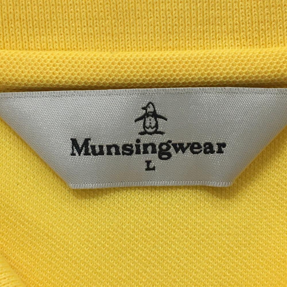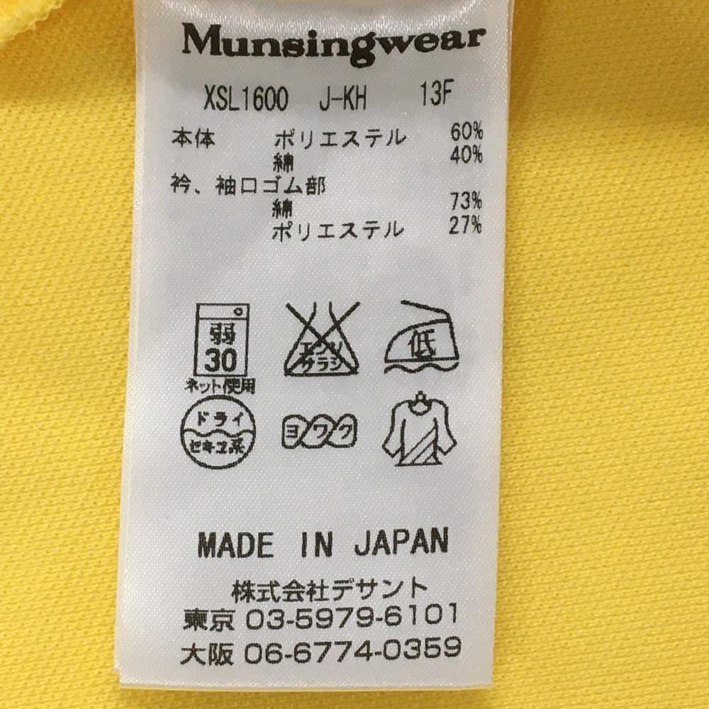 【美品】マンシングウェア 半袖ポロシャツ イエロー×ライトブルー 胸ロゴ刺しゅう レディース L ゴルフウェア Munsingwear