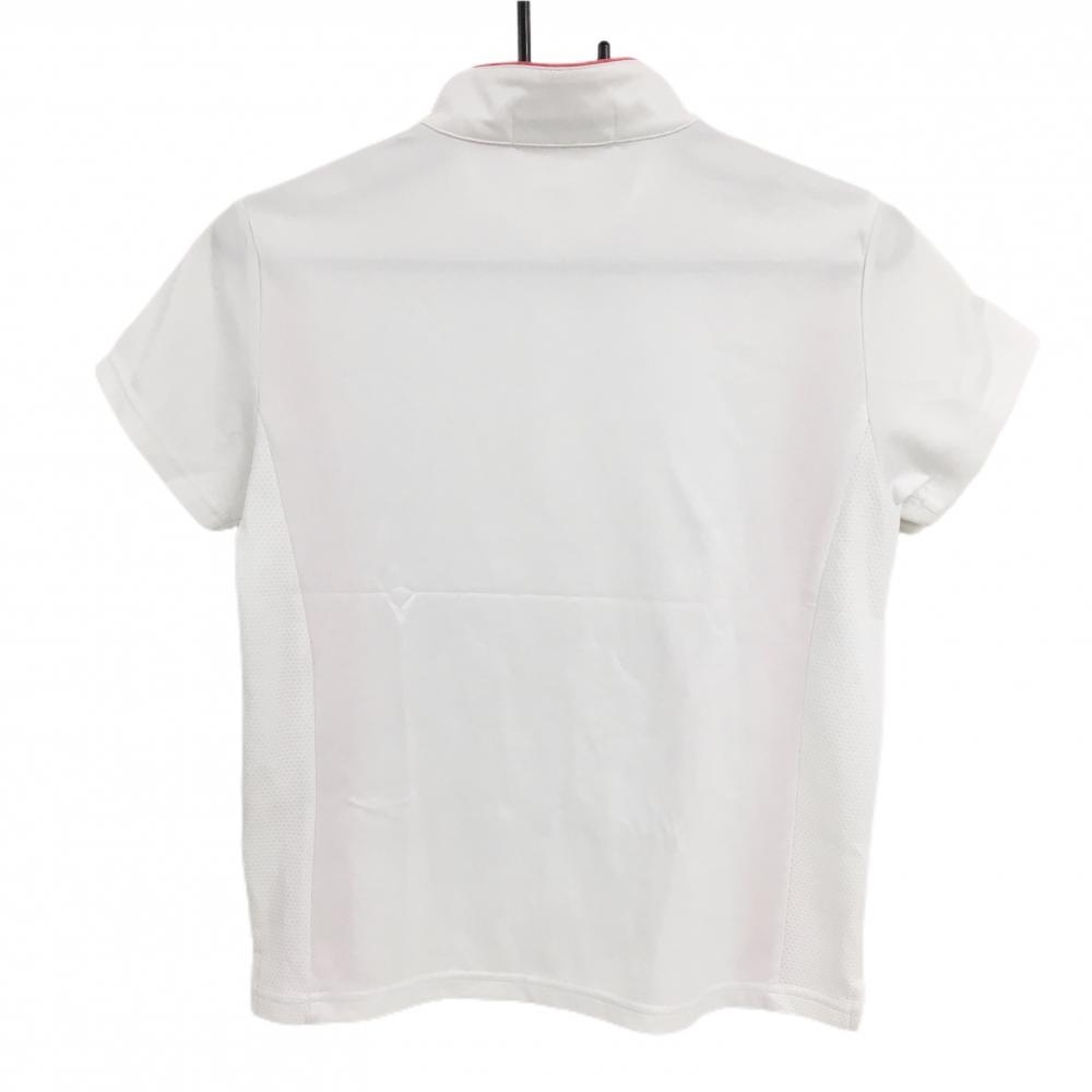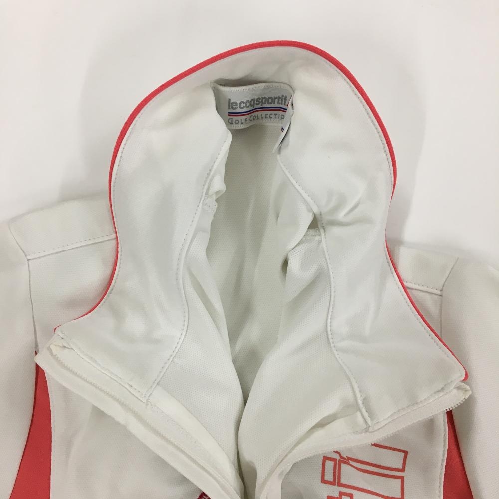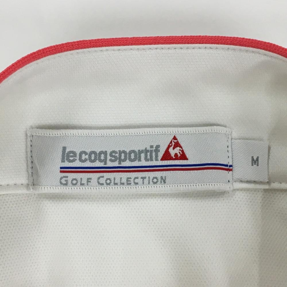【美品】ルコックゴルフ 半袖ハイネックシャツ 白×オレンジピンク ロゴプリント レディース M ゴルフウェア le coq sportif