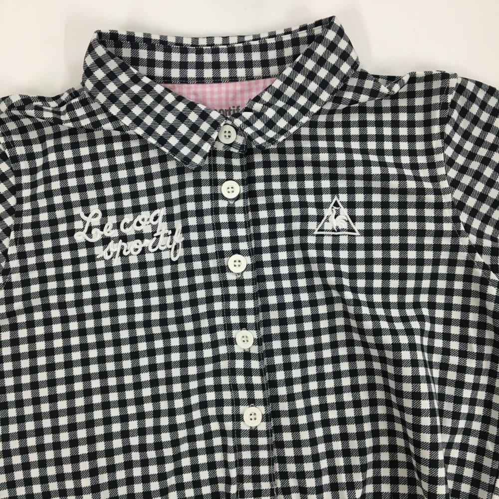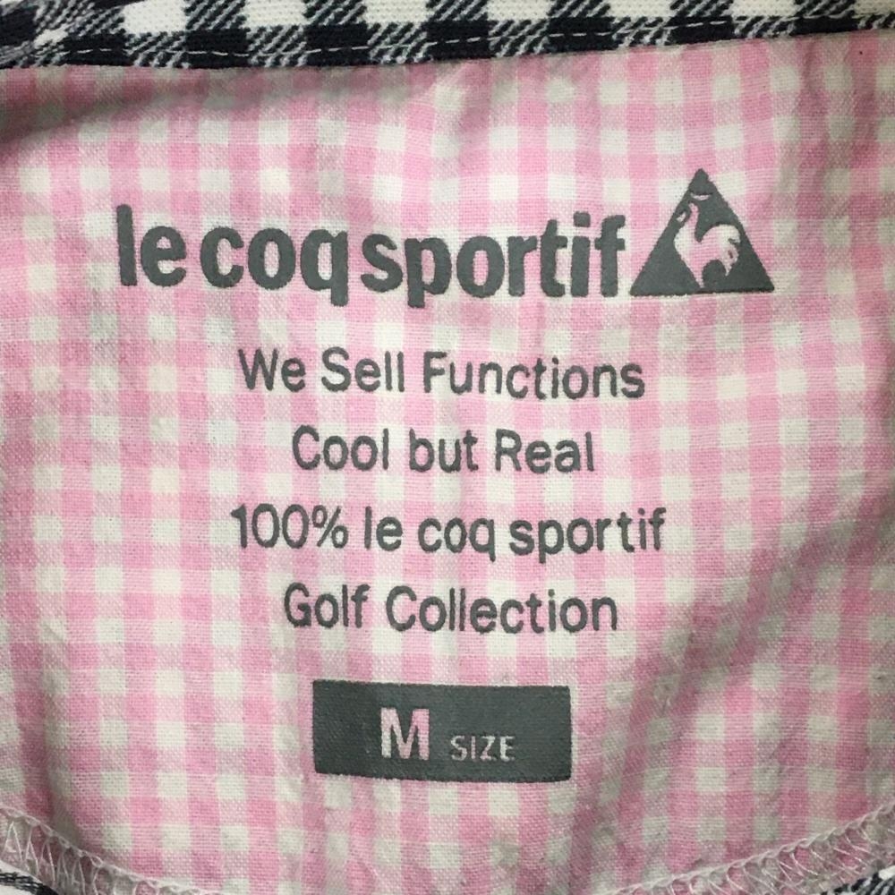 【超美品】ルコック 半袖ポロシャツ 白×黒 ギンガムチェック 前立て内側ピンク ロゴ刺しゅう レディース M ゴルフウェア le coq sportif