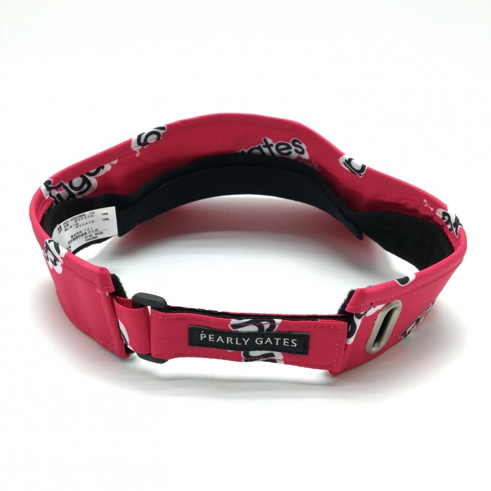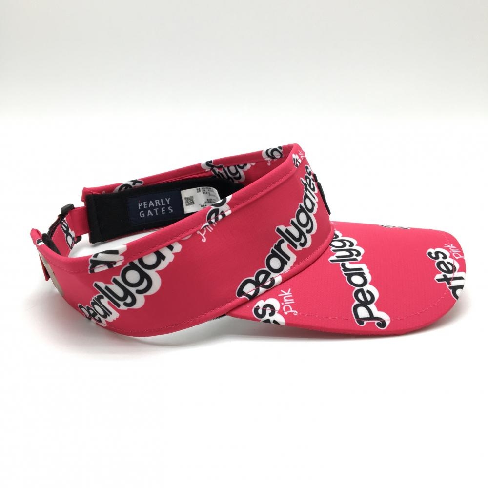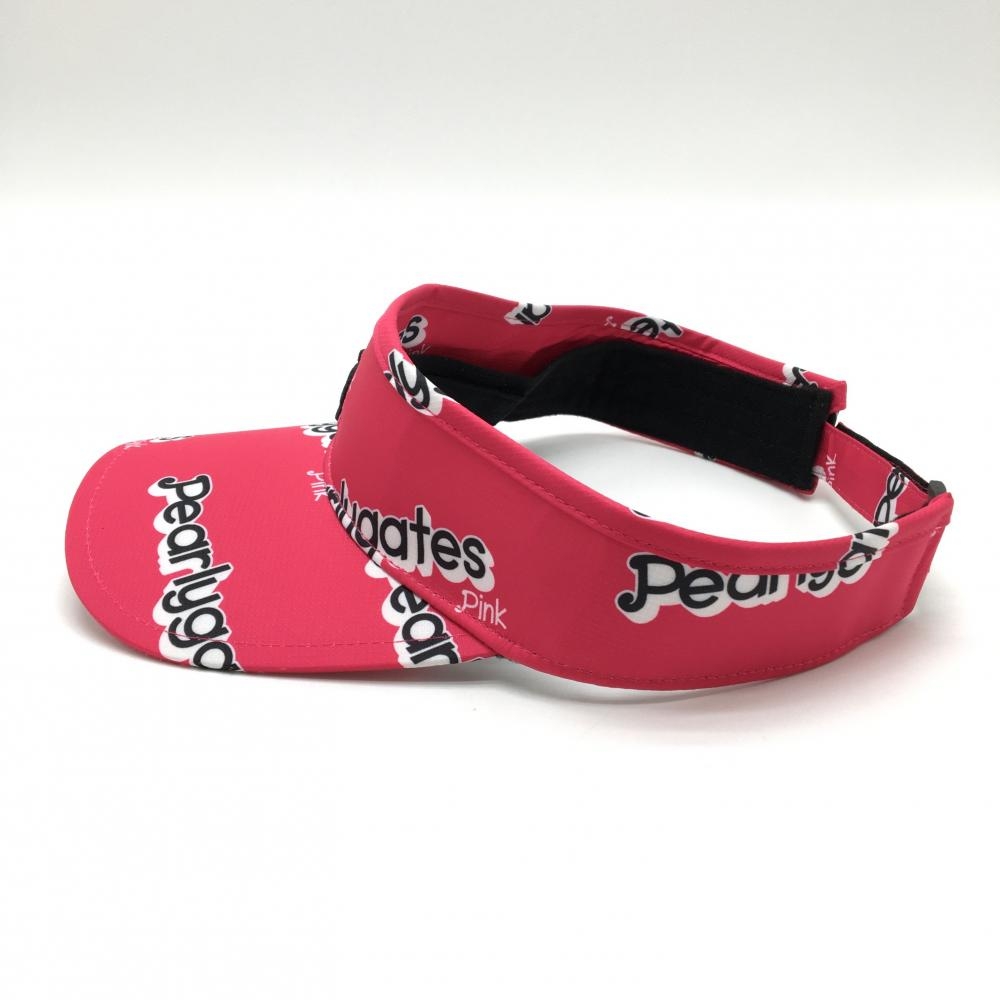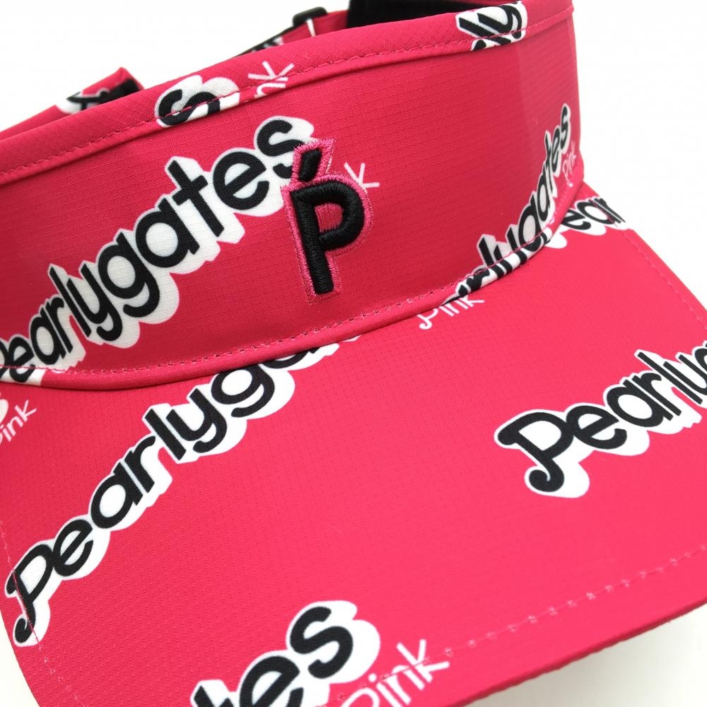 【超美品】パーリーゲイツ サンバイザー ピンク×黒 ロゴ総柄 FR ゴルフウェア 2023年モデル PEARLY GATES