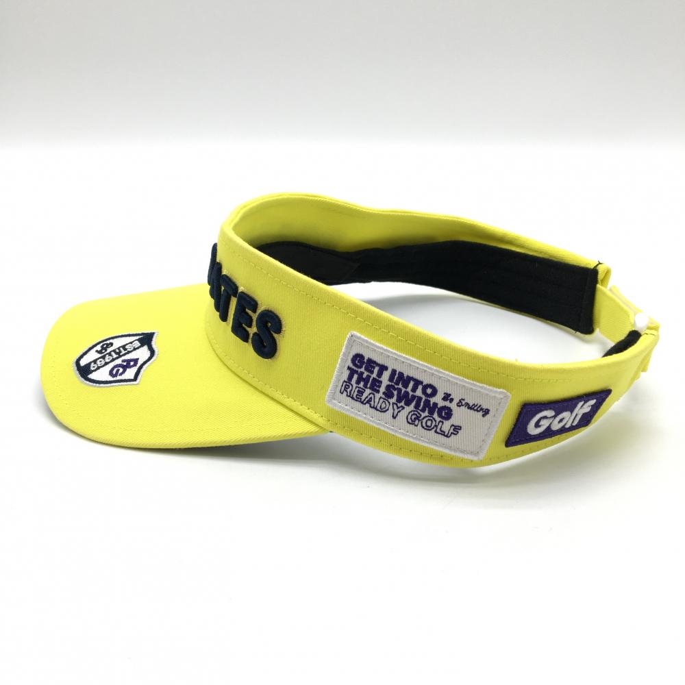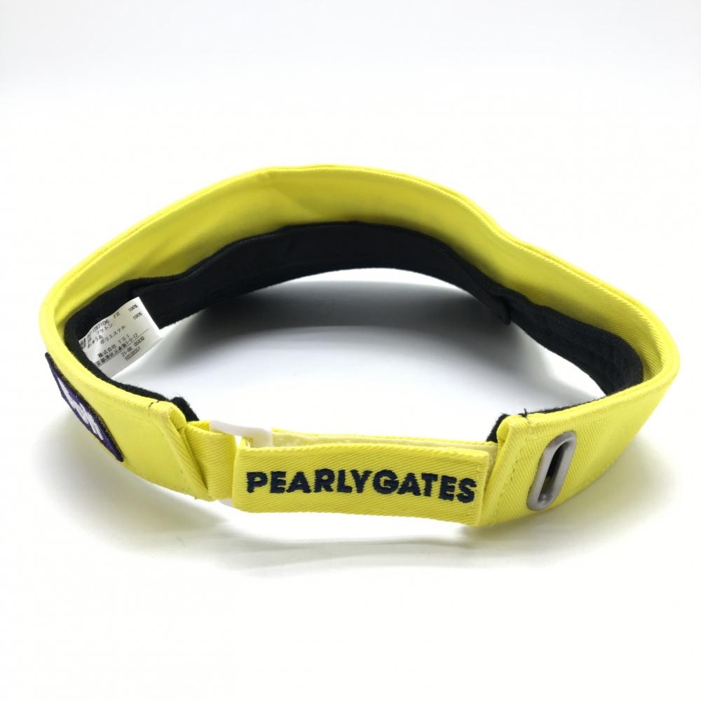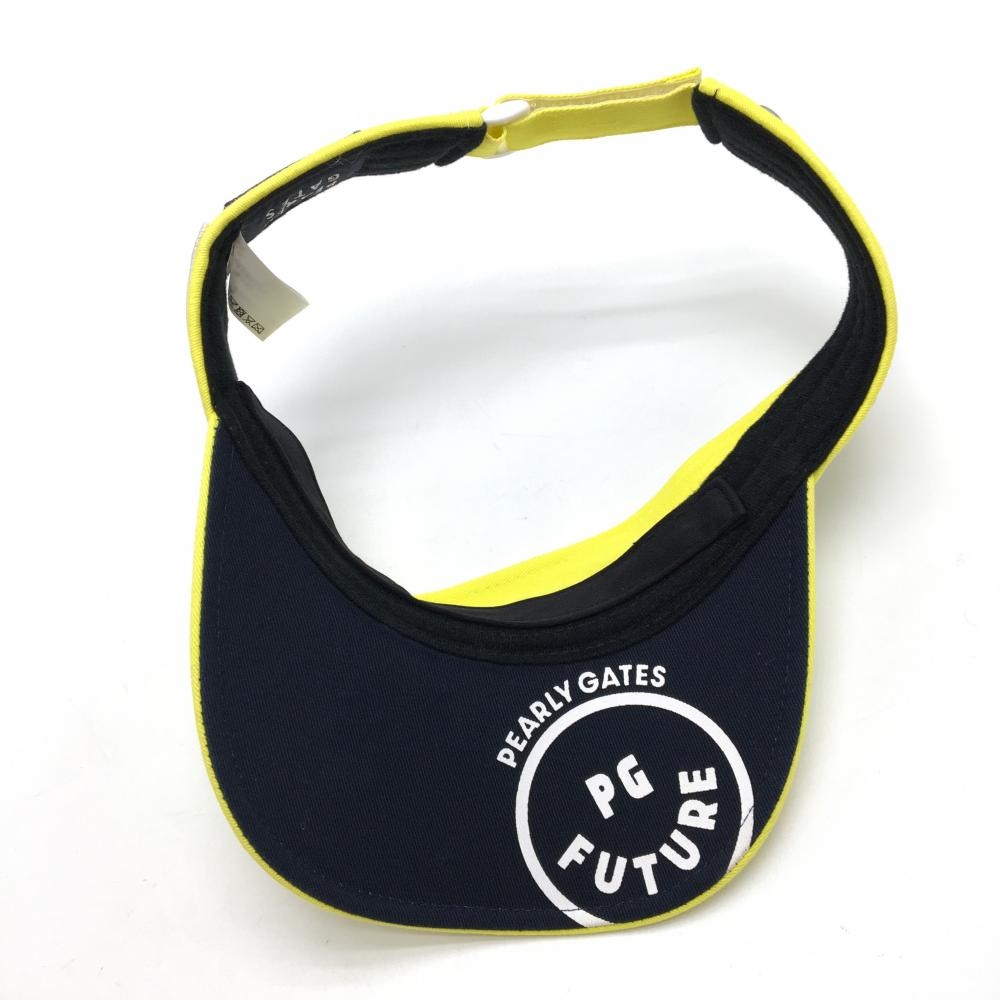 【超美品】パーリーゲイツ サンバイザー イエロー×ネイビー 立体ロゴ刺しゅう FR ゴルフウェア PEARLY GATES