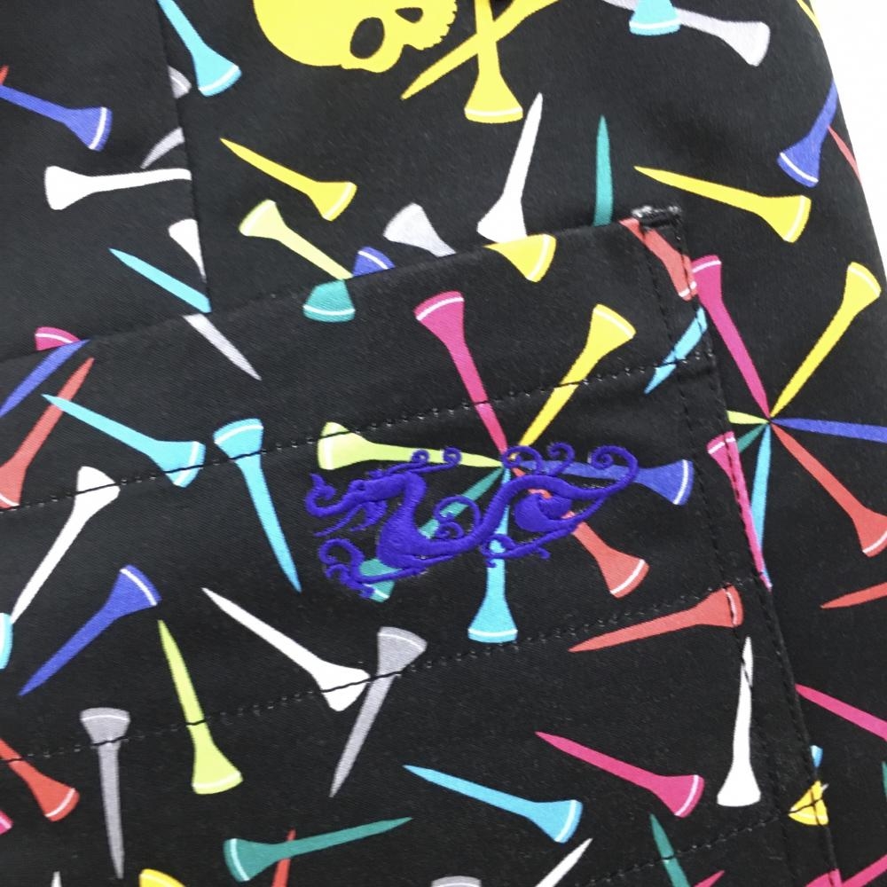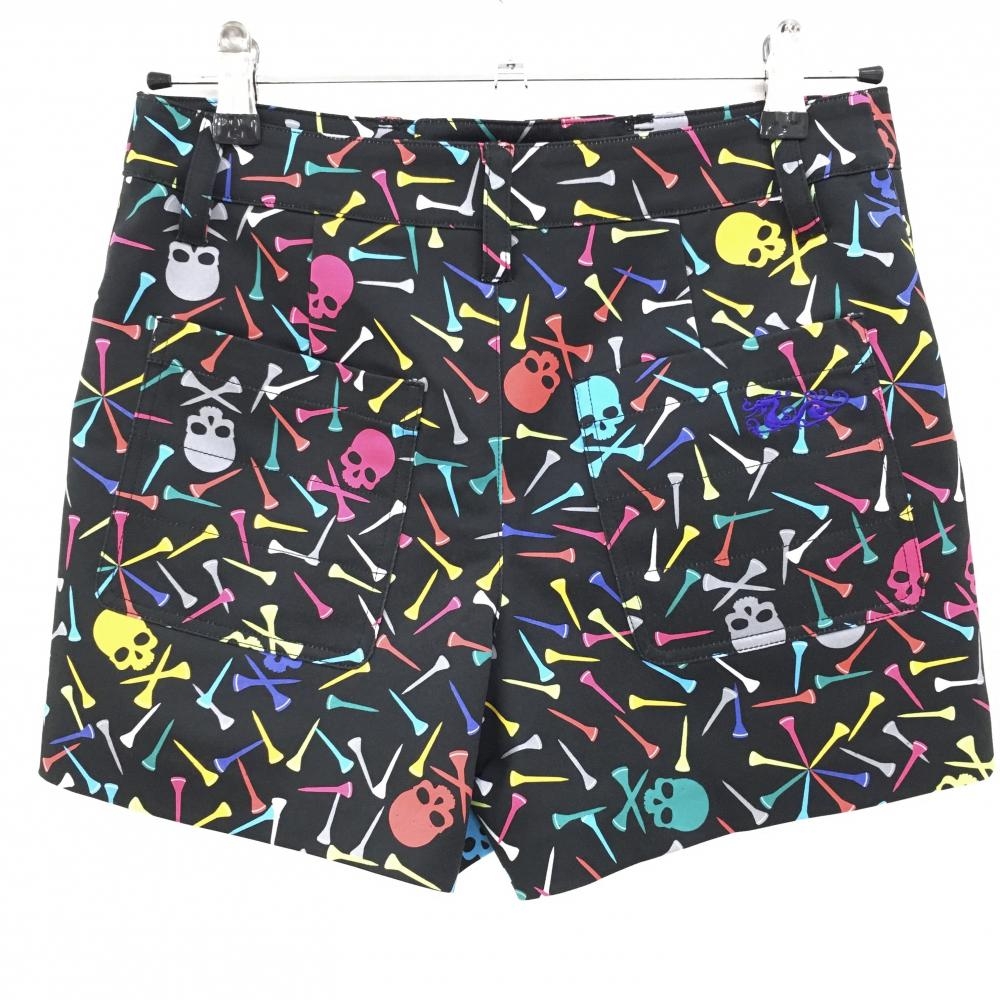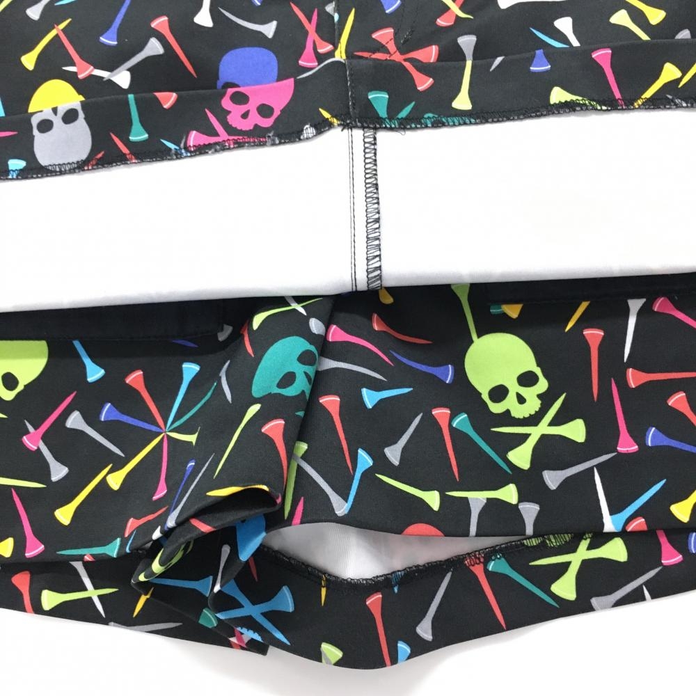 【美品】ダンスウィズドラゴン キュロットスカート 黒×マルチカラー 総柄 スカル レディース 2(M) ゴルフウェア Dance With Dragon
