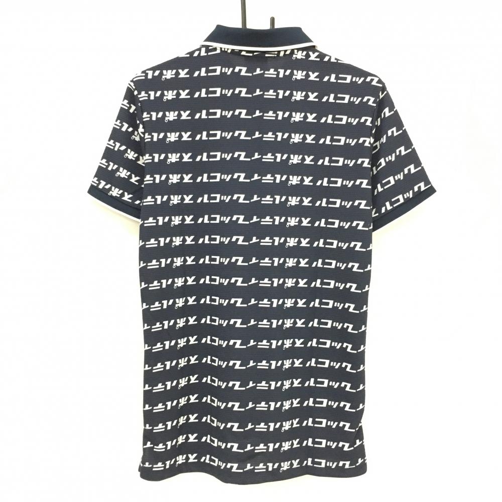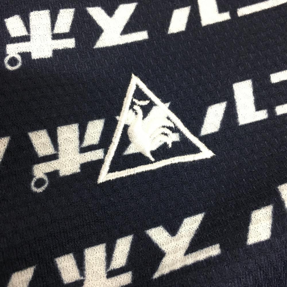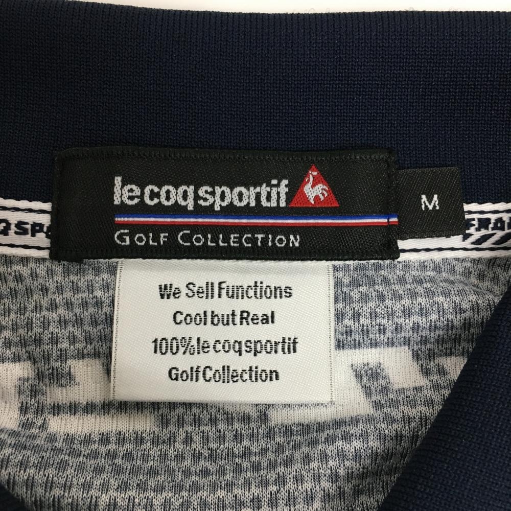 【超美品】ルコックゴルフ 半袖ポロシャツ ネイビー×白 スポルティー総柄 ロゴ刺しゅう メンズ M ゴルフウェア le coq sportif