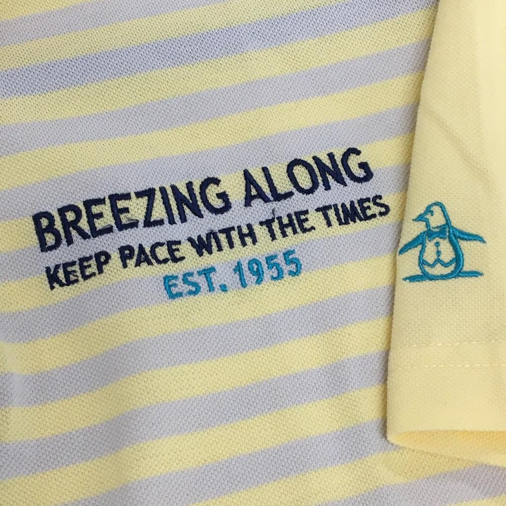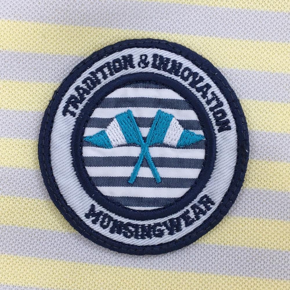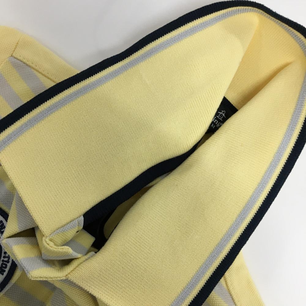 マンシングウェア 半袖ポロシャツ イエロー×グレー 前身頃ボーダー ロゴ刺しゅう メンズ M ゴルフウェア Munsingwear