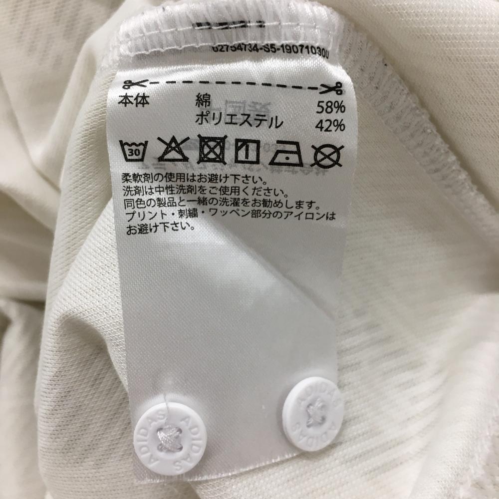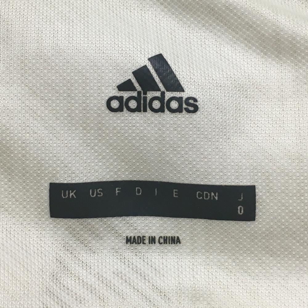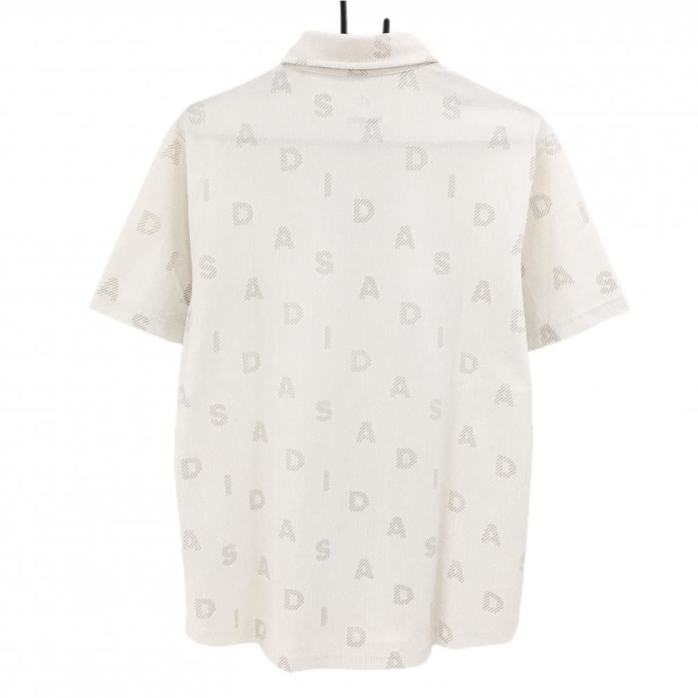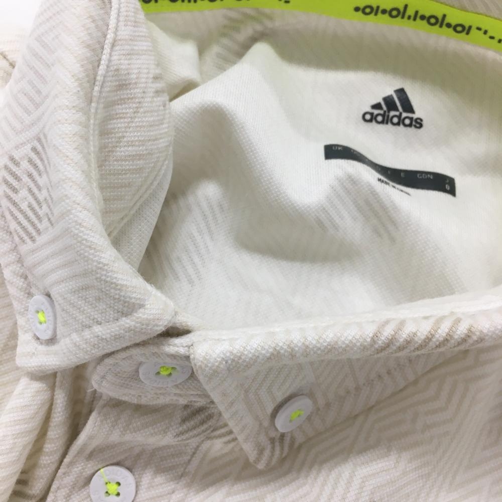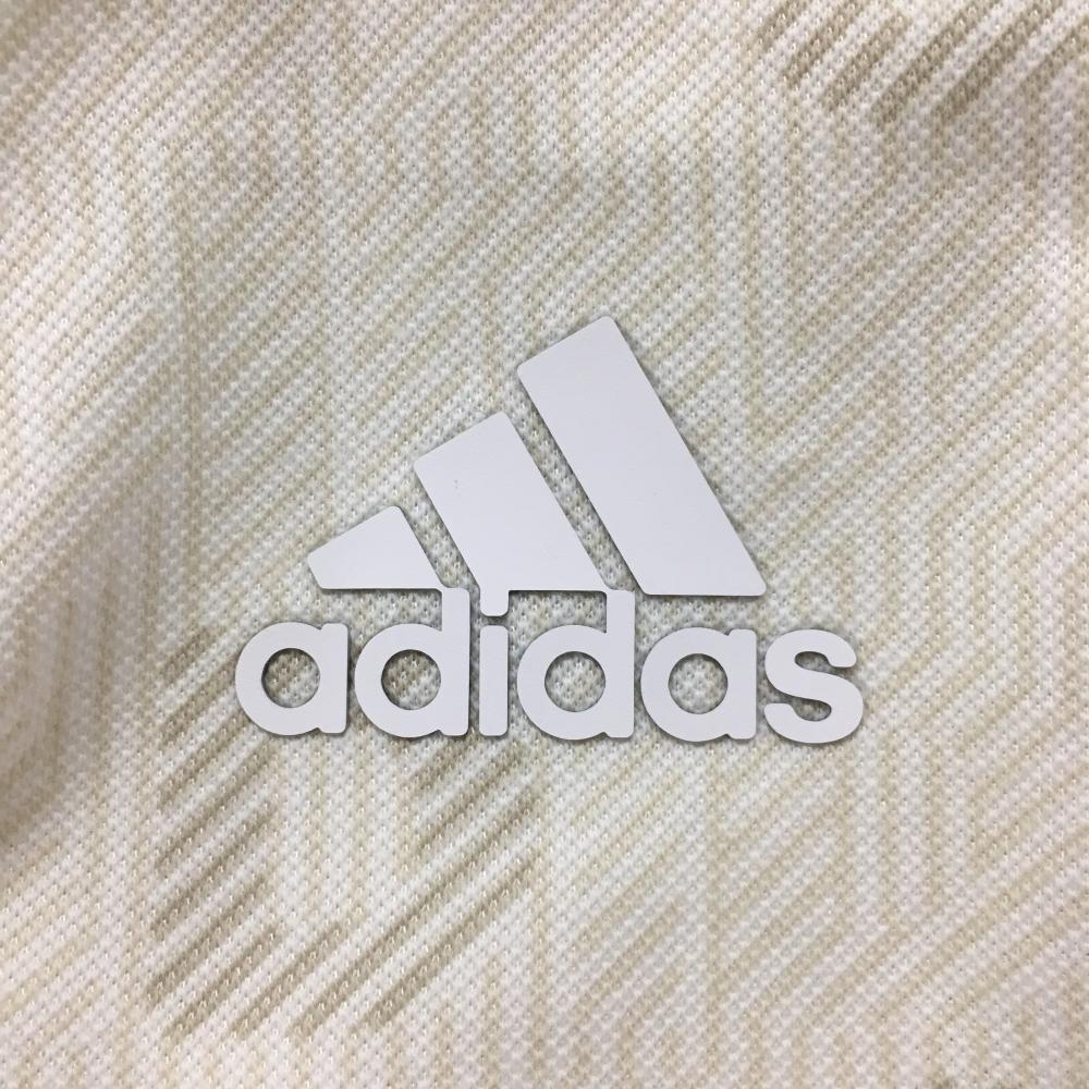 【美品】アディダス 半袖ポロシャツ 白×ライトベージュ 総柄 ボタンダウン 胸元ロゴ メンズ O ゴルフウェア adidas