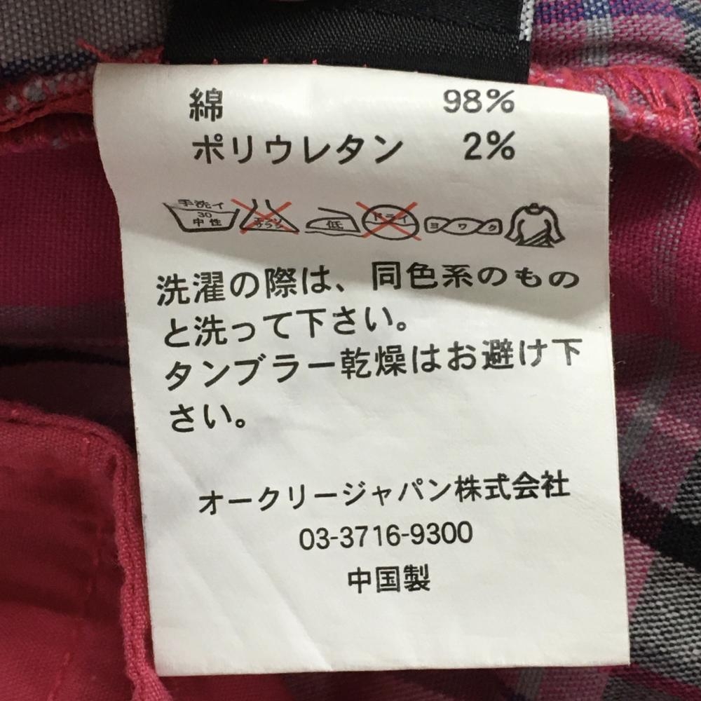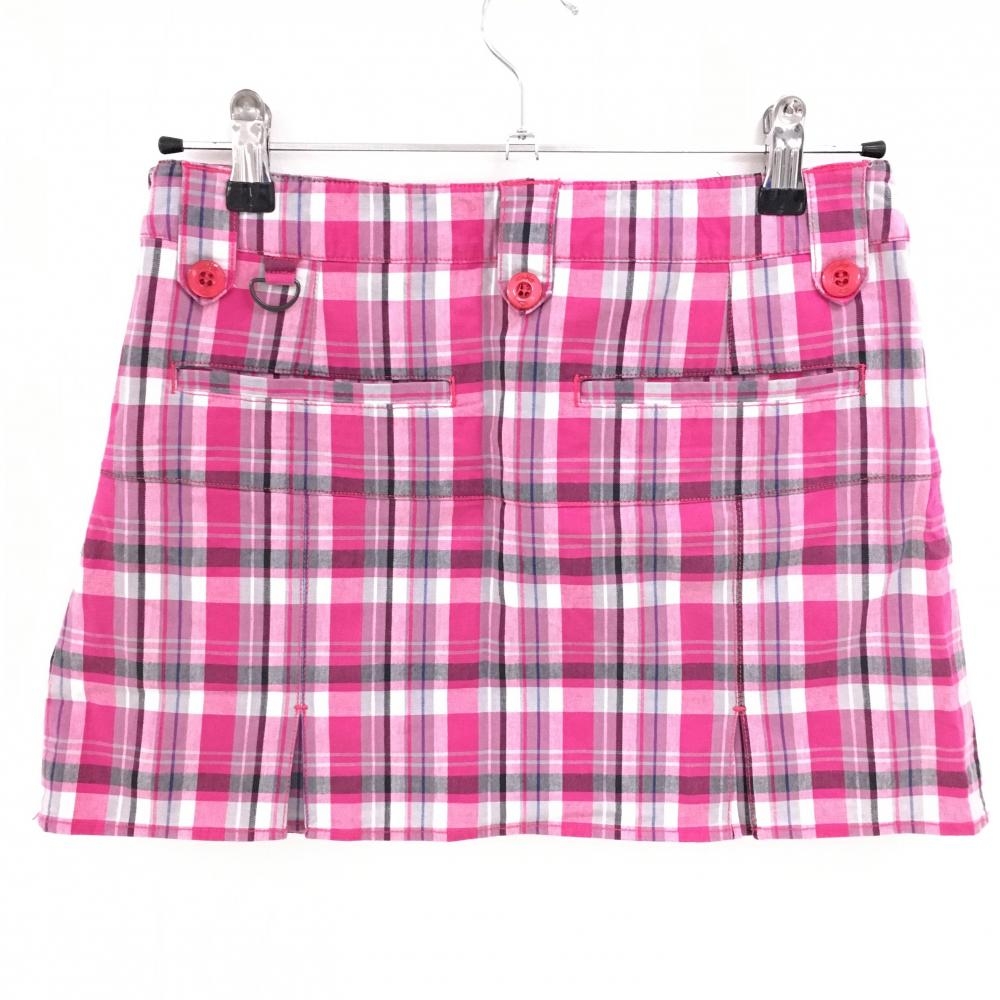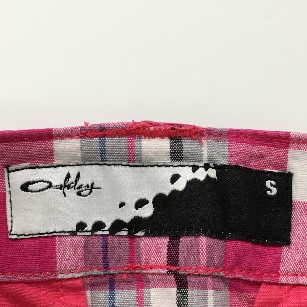 【超美品】オークリー スカート ピンク×白 チェック ロゴ刺しゅう インナーパンツ付き レディース S ゴルフウェア Oakley