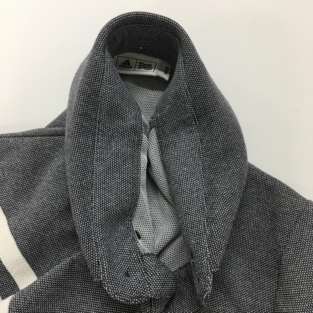 アディダス 半袖ポロシャツ 杢ネイビー×白 3ライン ボタンダウン メンズ M/M ゴルフウェア adidas