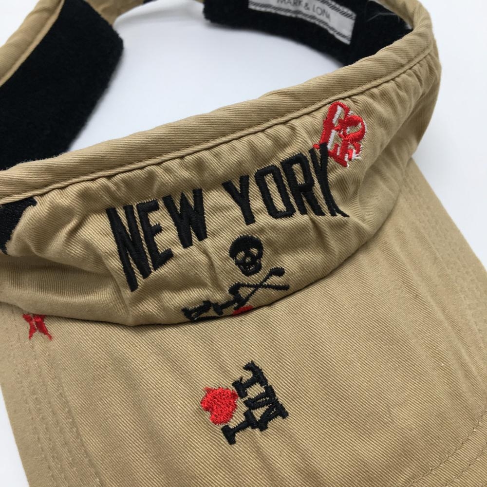 【美品】マークアンドロナ サンバイザー ベージュ×黒 総柄 ゴルフウェア MARK&LONA