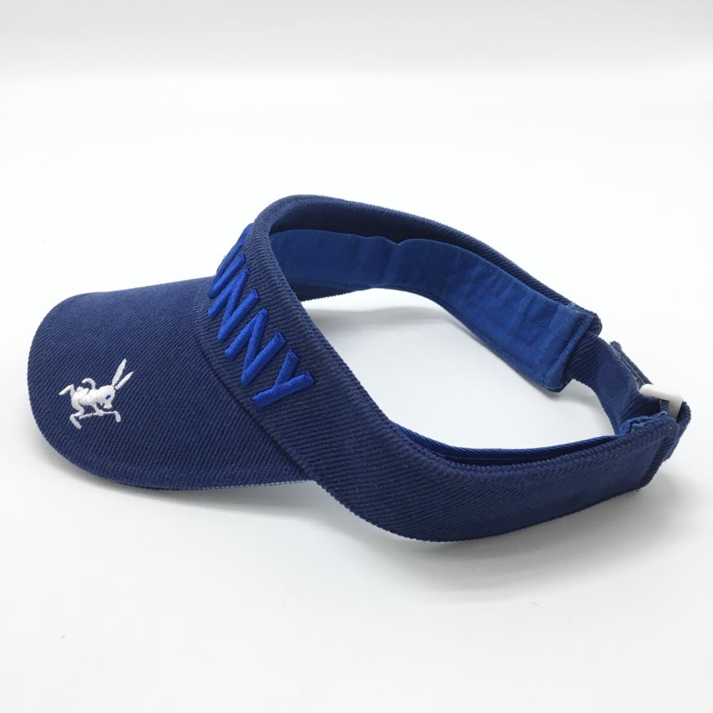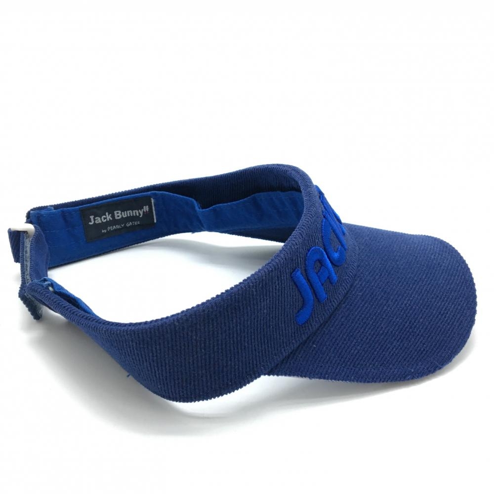 【美品】ジャックバニー サンバイザー ネイビー×ブルー コーデュロイ 立体ロゴ ゴルフウェア Jack Bunny