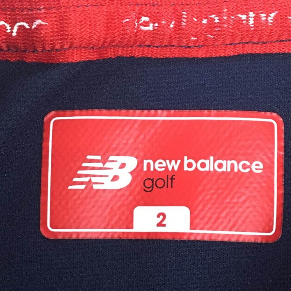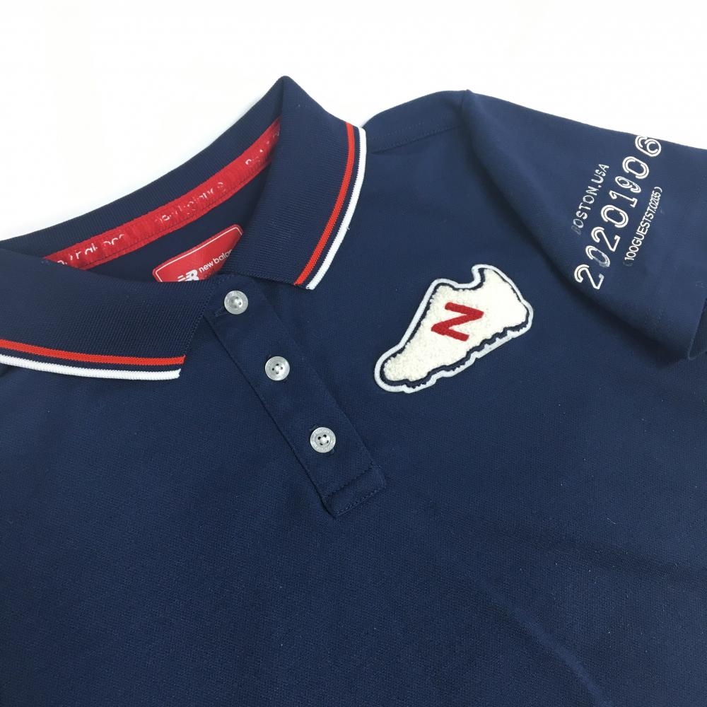 ニューバランスゴルフ 半袖ポロシャツ ネイビー×レッド スニーカーワッペン レディース 2(L) ゴルフウェア New Balance