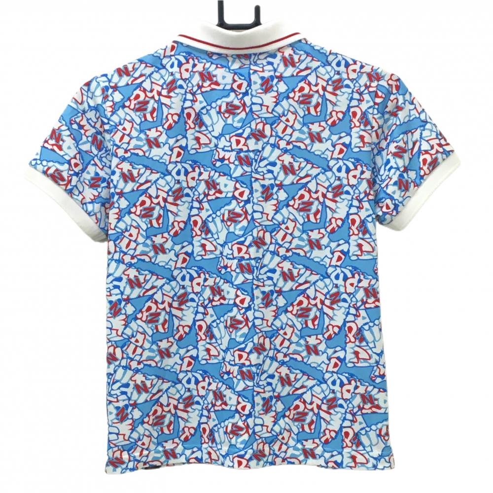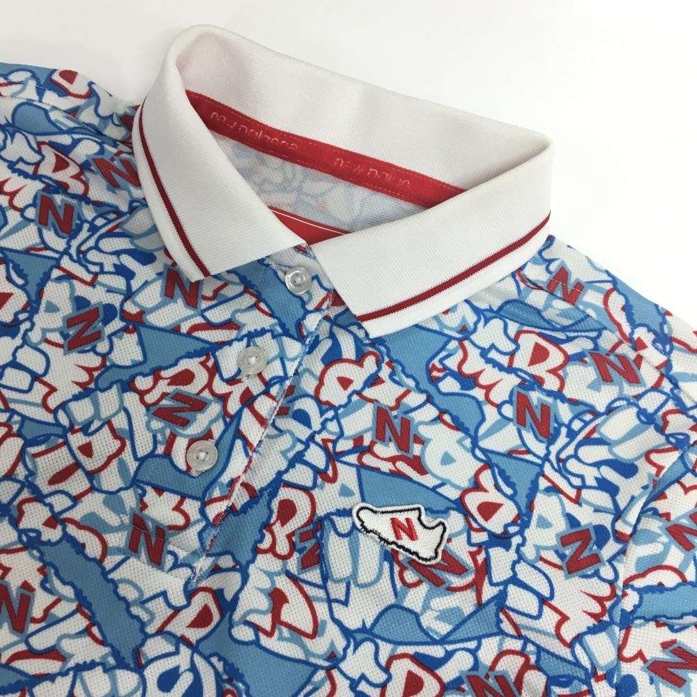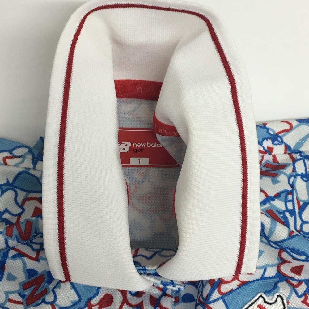 ニューバランスゴルフ 半袖ポロシャツ ライトブルー×レッド 総柄 レディース 1(M) ゴルフウェア New Balance