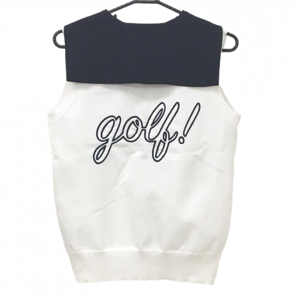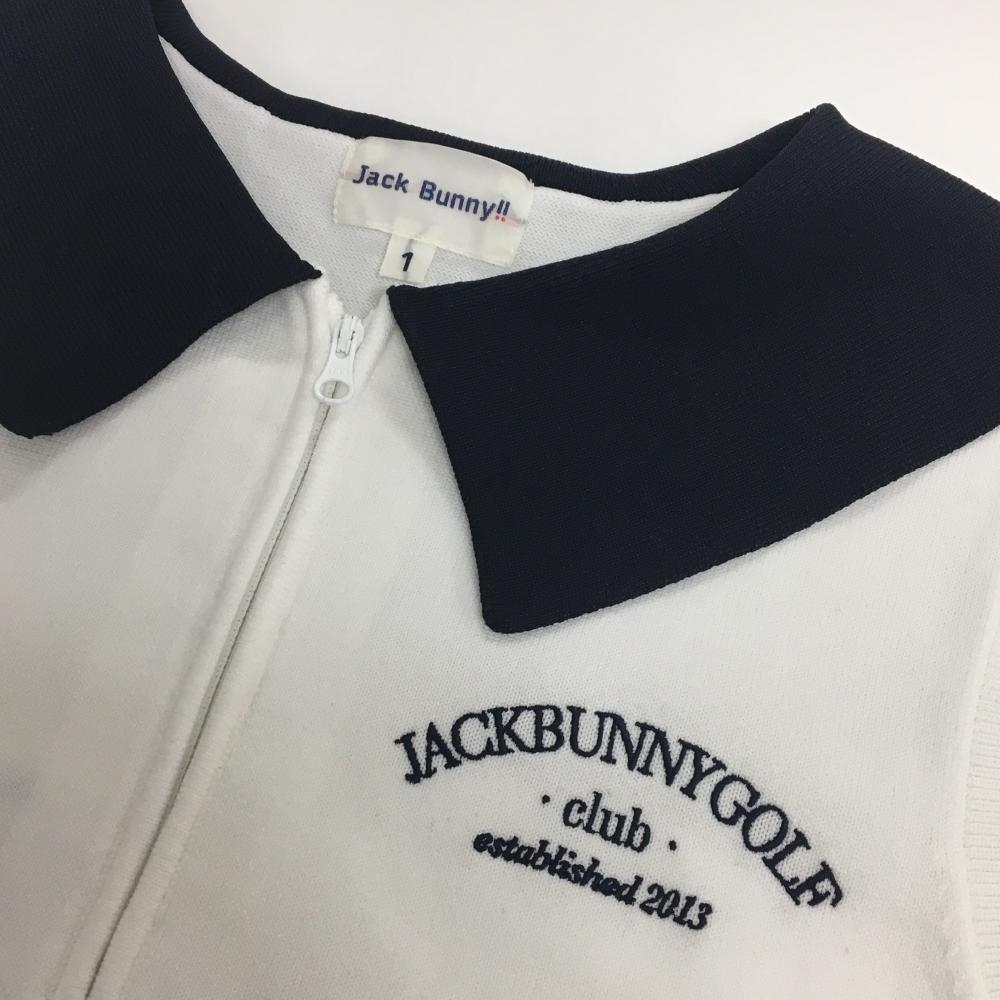 【超美品】ジャックバニー ノースリーブニットポロシャツ 白×ネイビー レディース 1(M) ゴルフウェア Jack Bunny
