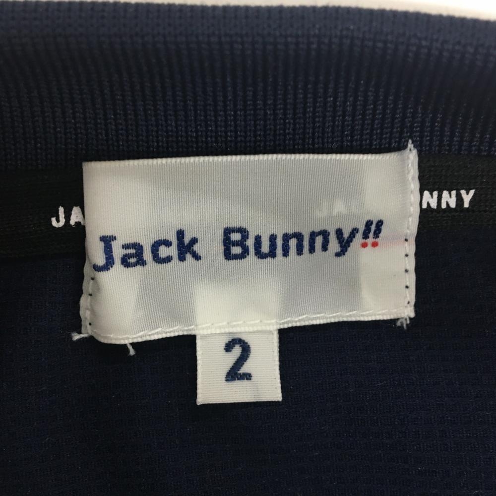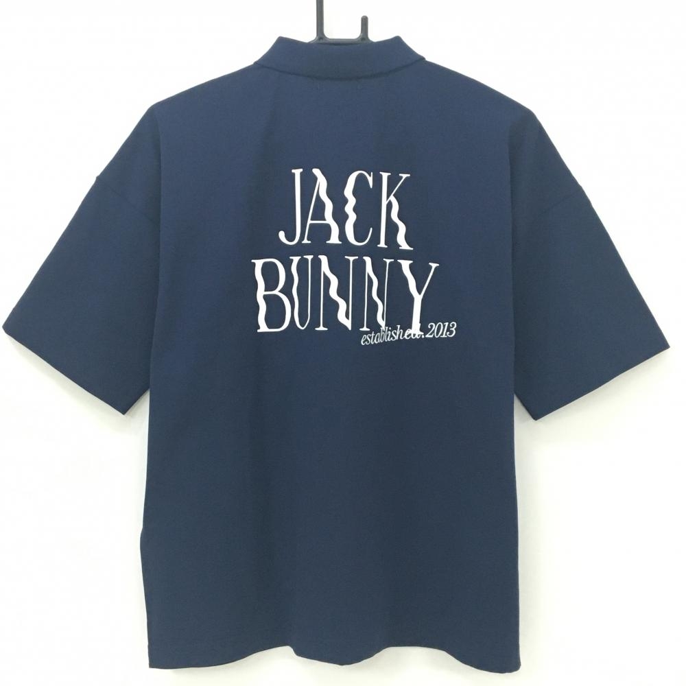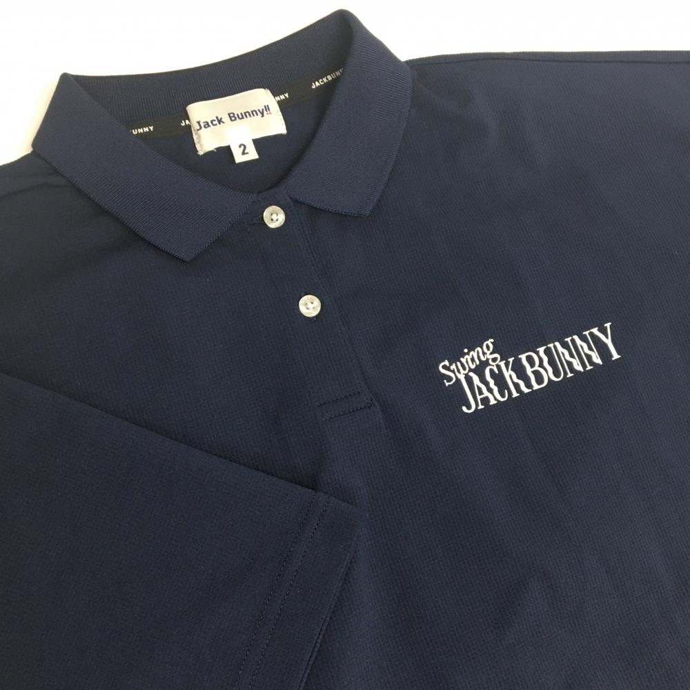 【超美品】ジャックバニー 半袖ポロシャツ ネイビー×白 背面ビッグロゴ レディース 2(L) ゴルフウェア 2024年モデル Jack Bunny
