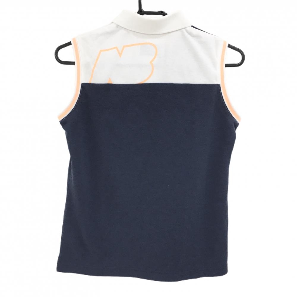 ニューバランスゴルフ ノースリーブポロシャツ ネイビー×白 胸ロゴワッペン 袖口ライン レディース 1(M) ゴルフウェア New Balance