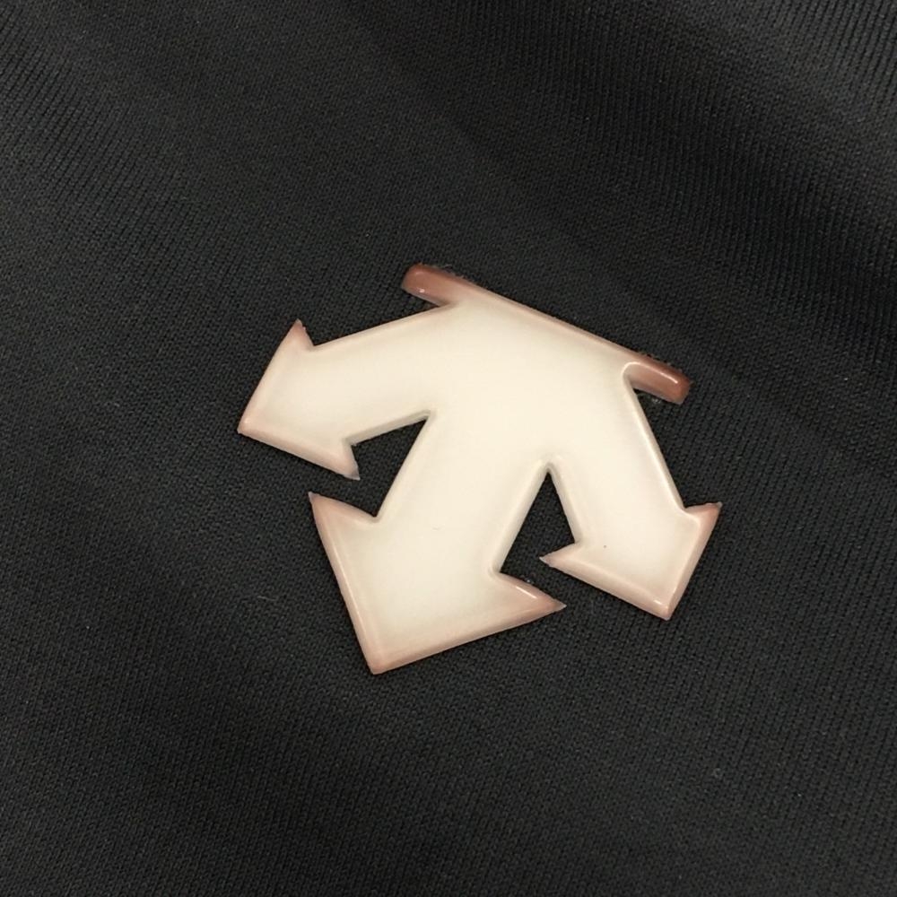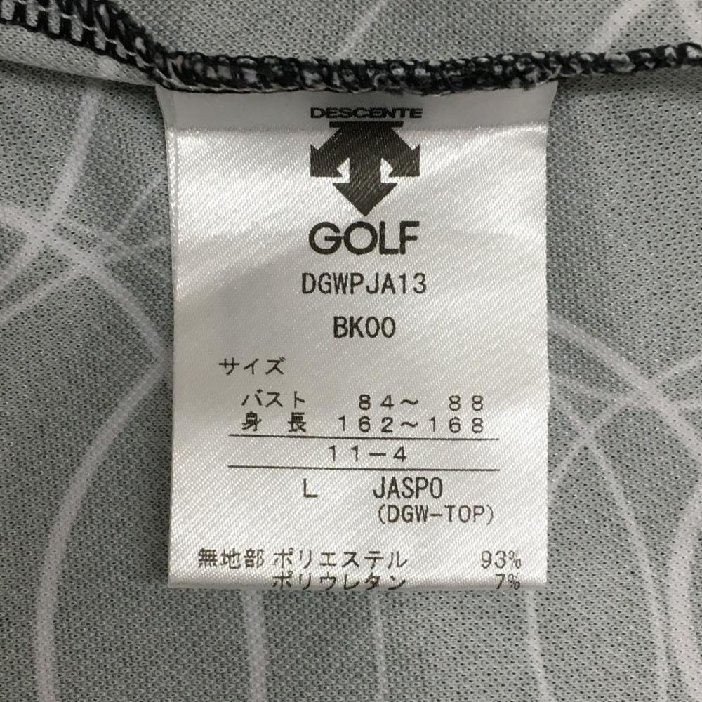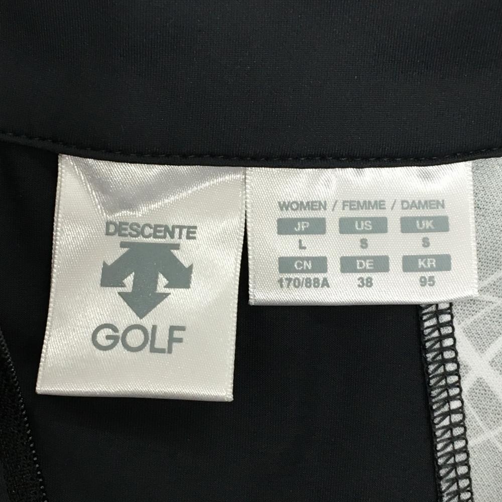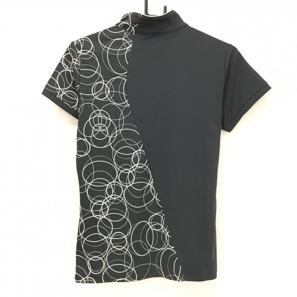【美品】デサントゴルフ 半袖ハイネックシャツ 黒×白 左側柄 丸 ハーフジップ 肩ロゴ 中田英寿 レディース L ゴルフウェア DESCENTE
