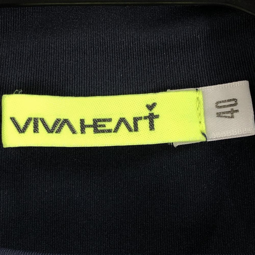 【超美品】ビバハート 半袖ハイネックシャツ ネイビー×白 フロントロゴ レディース 40(M) ゴルフウェア VIVA HEART