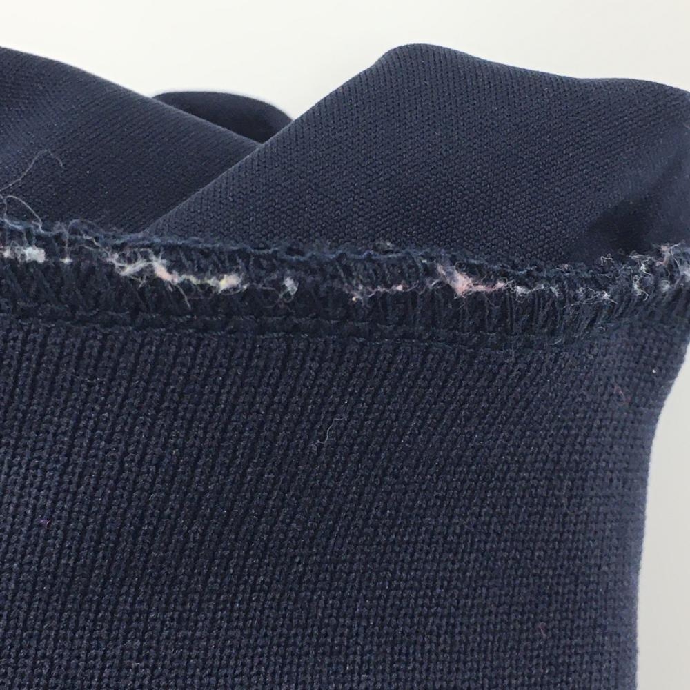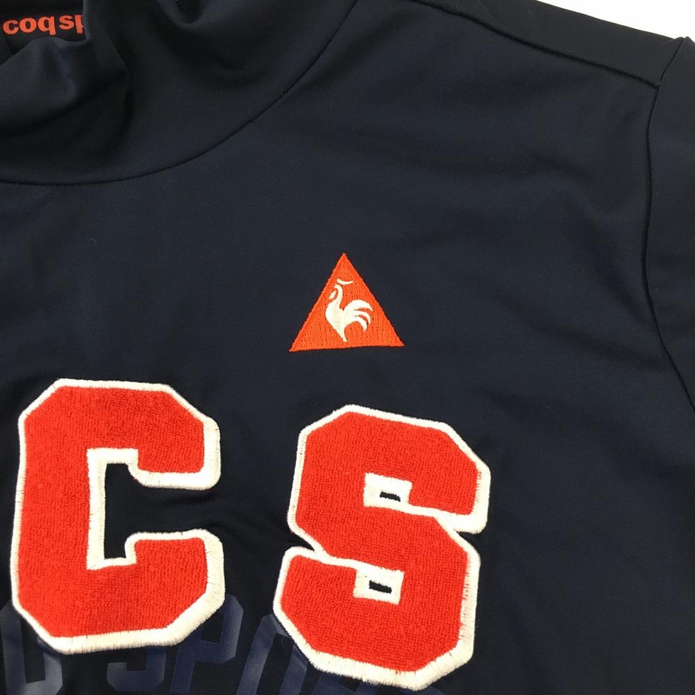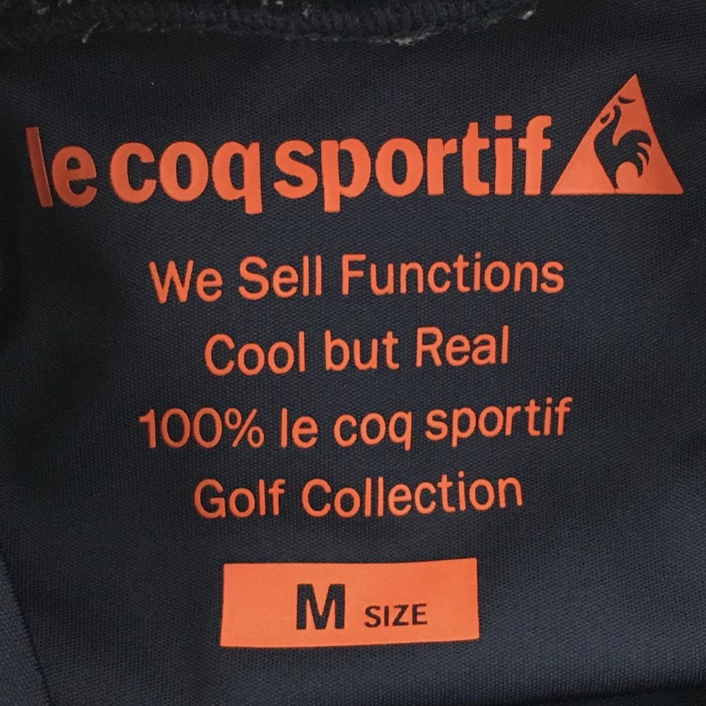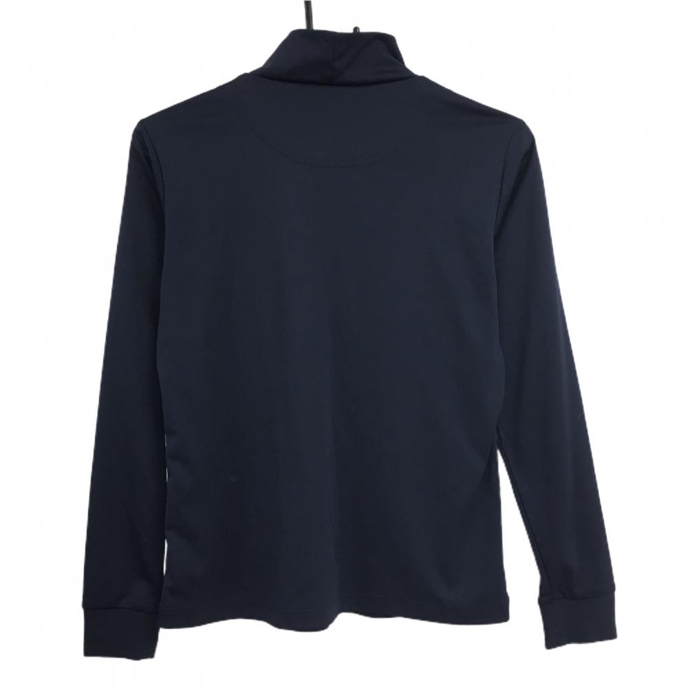 【美品】ルコックゴルフ 長袖ハイネックシャツ ネイビー×レッド フロントロゴ サイドライン レディース M ゴルフウェア le coq sportif