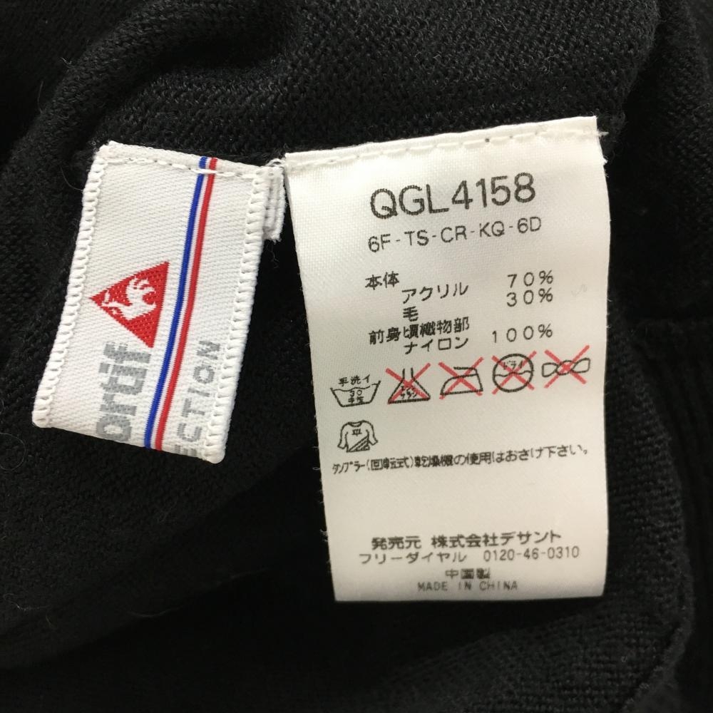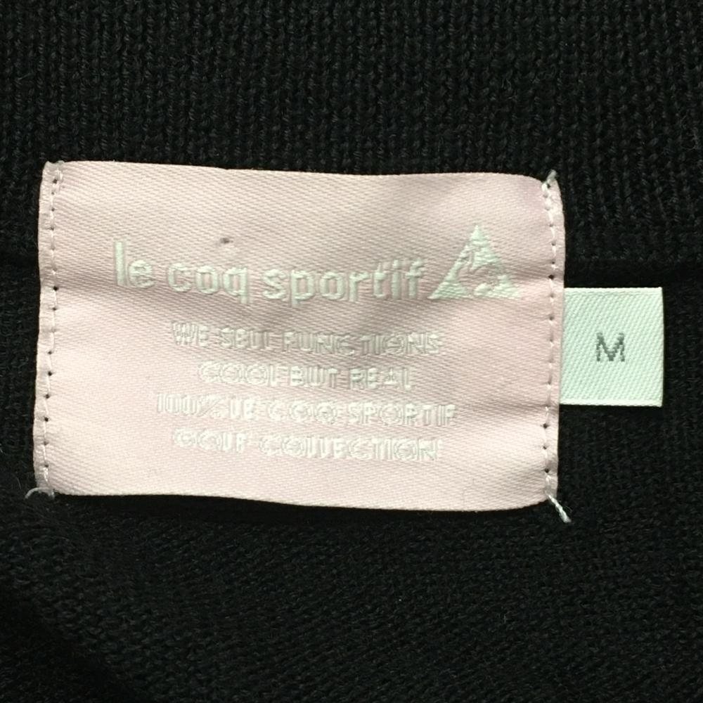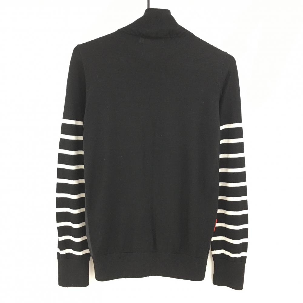【美品】ルコックゴルフ 切替ニットジャケット 黒×白 袖ボーダー柄 胸元ロゴ ウール混 レディース M ゴルフウェア le coq sportif