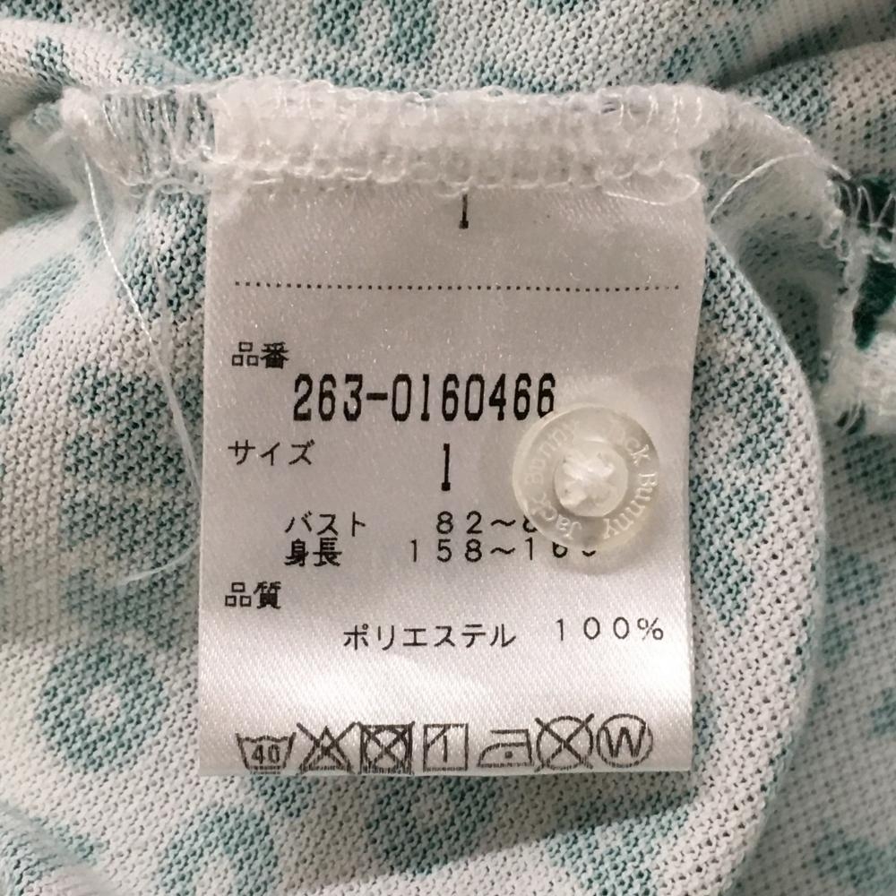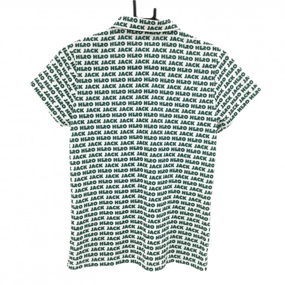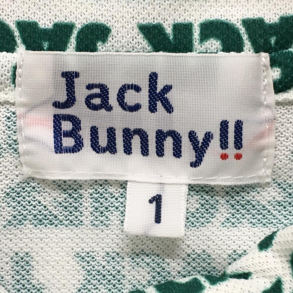 【超美品】ジャックバニー 半袖ポロシャツ 白×グリーン ロゴ総柄 レディース 1(M) ゴルフウェア Jack Bunny