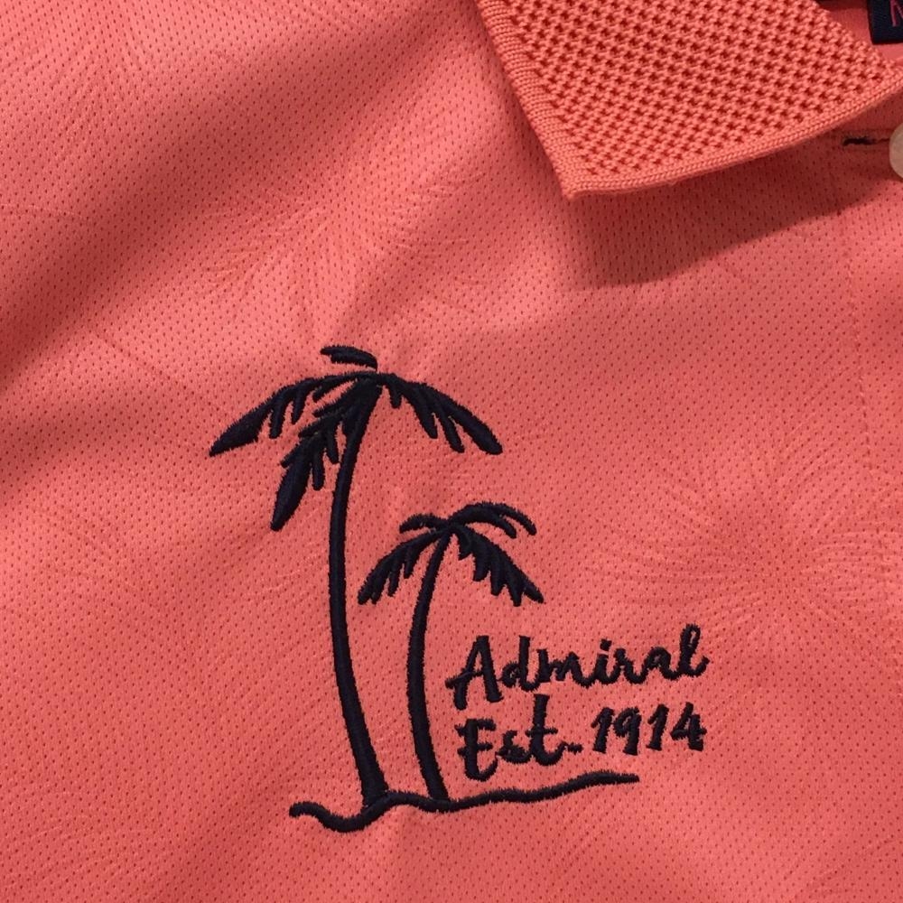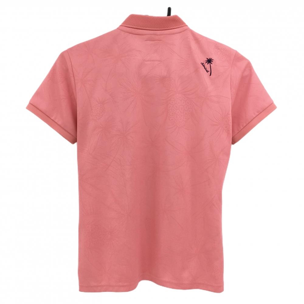 【超美品】アドミラル 半袖ポロシャツ ピンク 地模様 ヤシの木刺しゅう レディース M ゴルフウェア Admiral