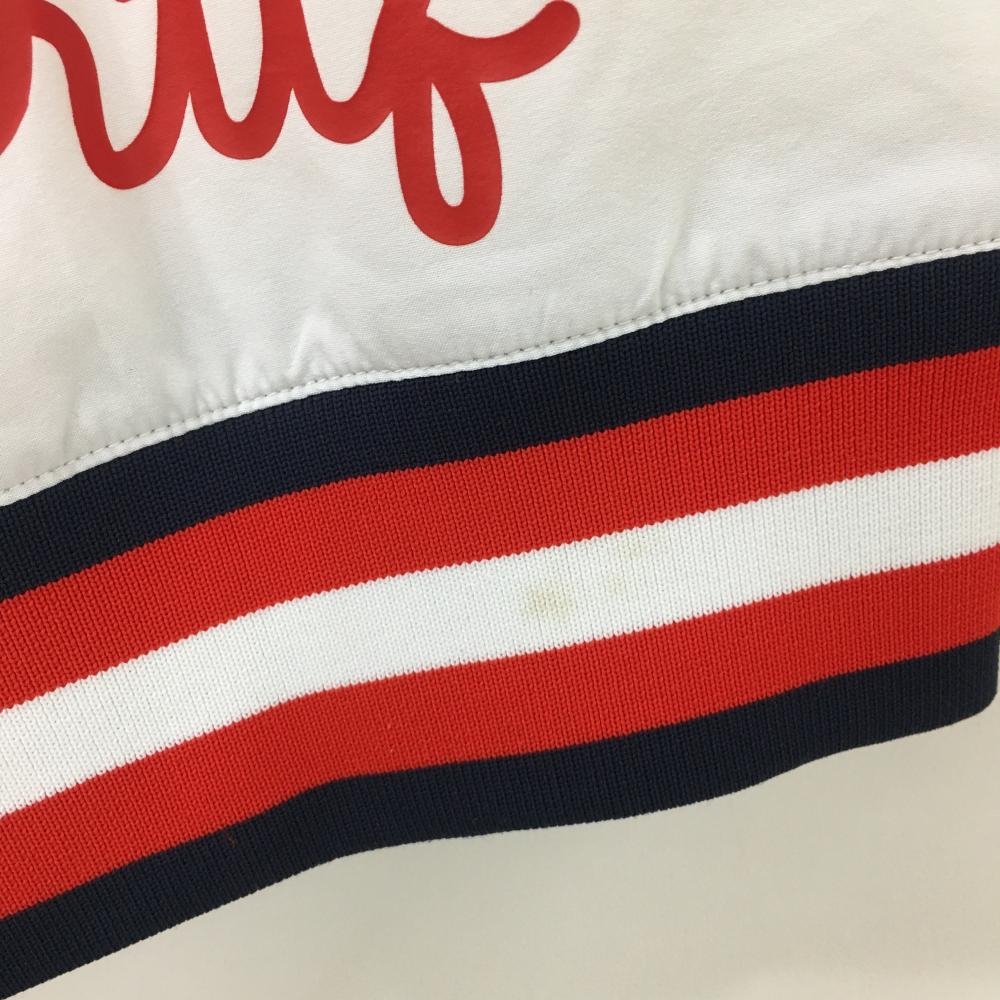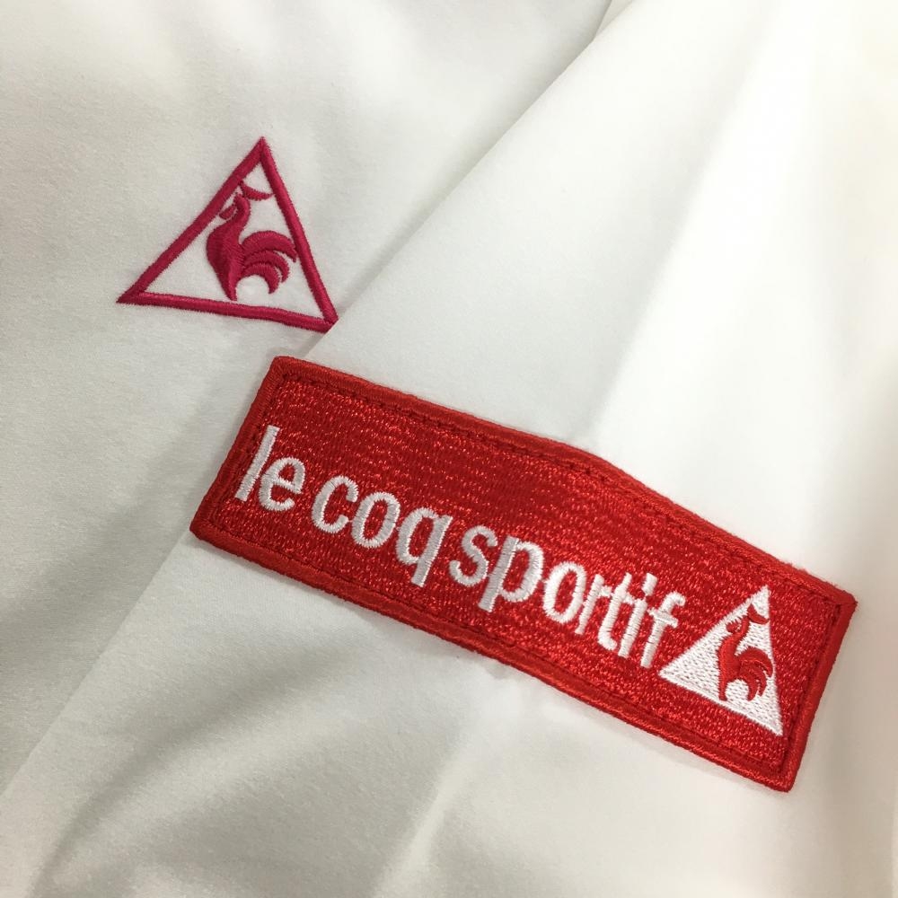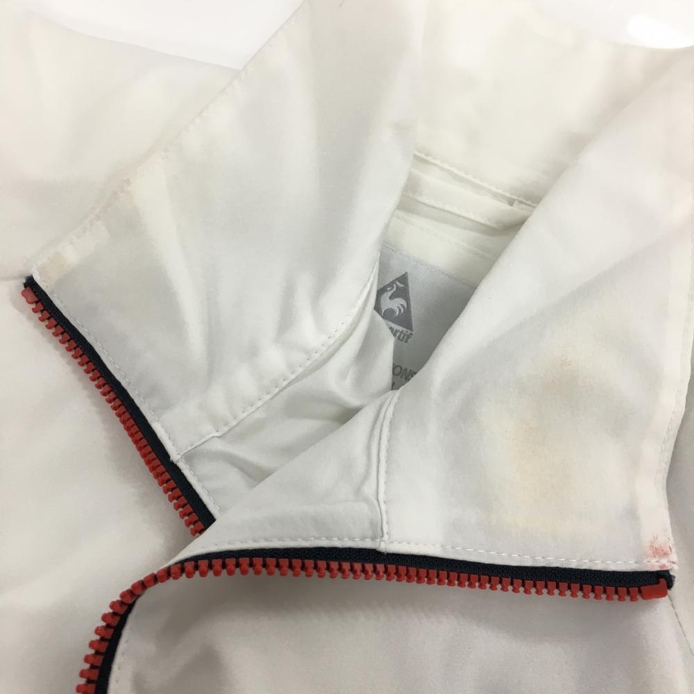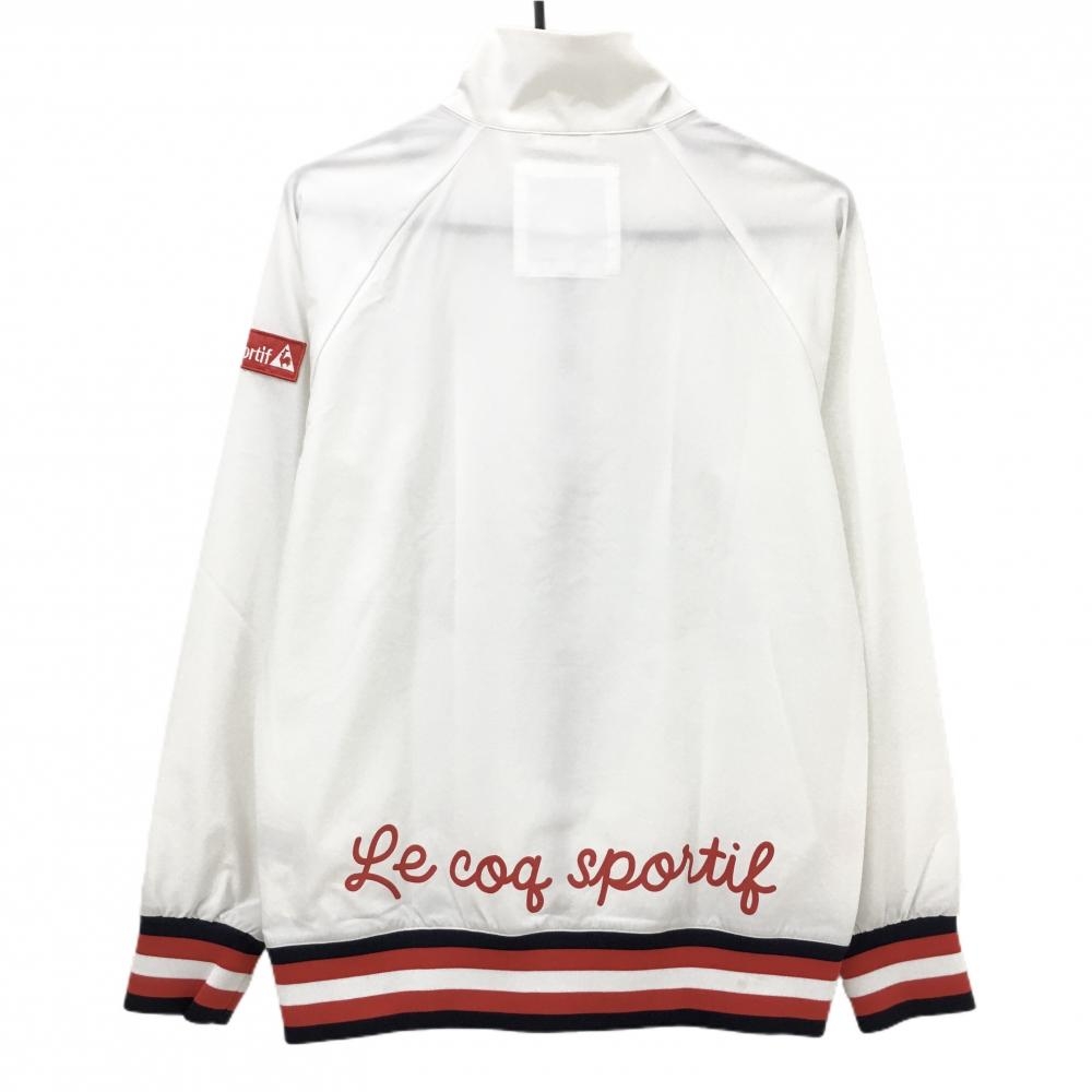 ルコックゴルフ ジャケットブルゾン 白×レッド リブボーダー 後裾ロゴ レディース L ゴルフウェア le coq sportif