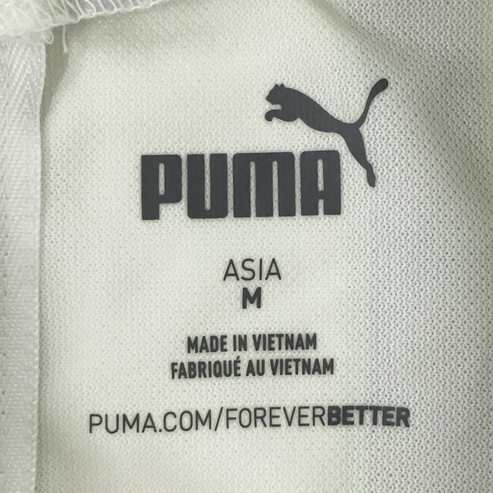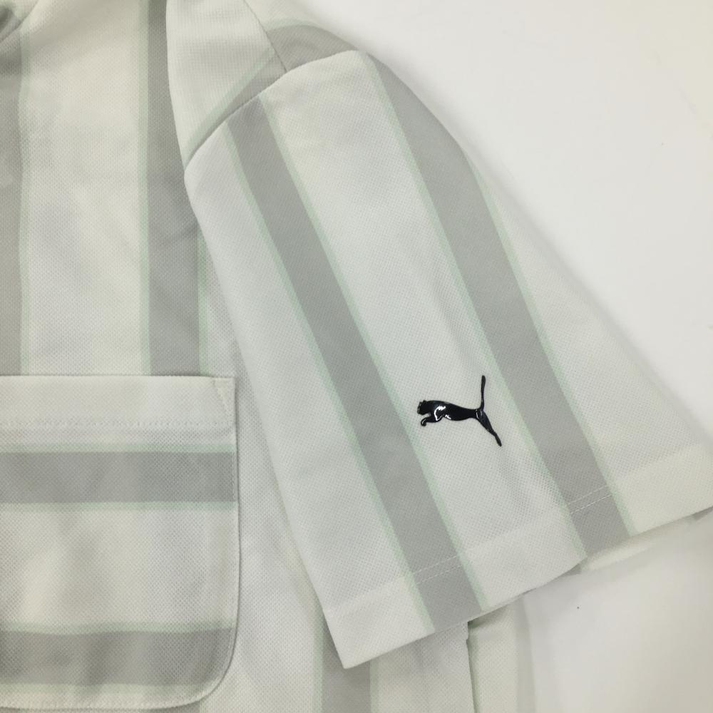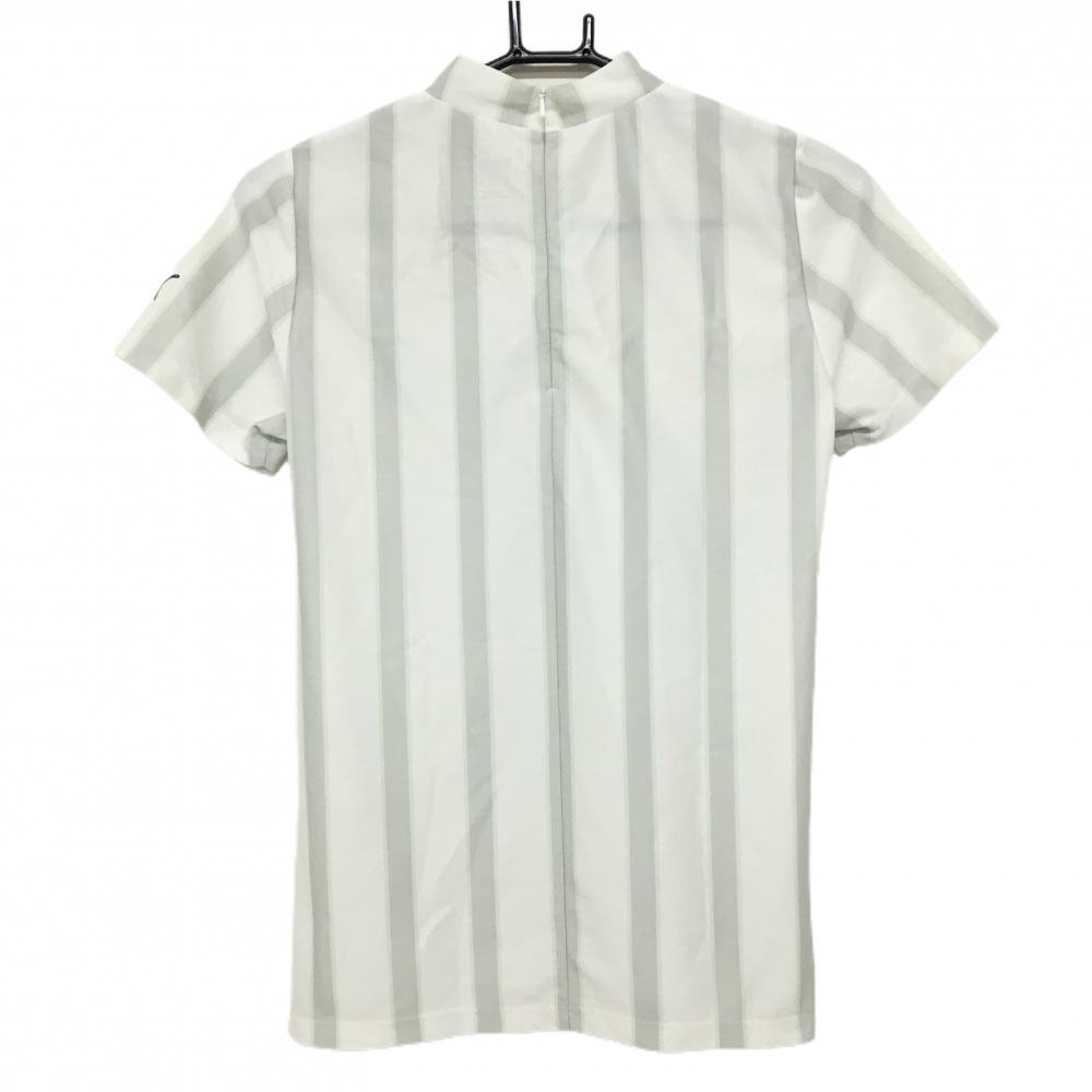 【超美品】プーマ 半袖ハイネックシャツ 白×グレー ストライプ バックジップ レディース M ゴルフウェア PUMA