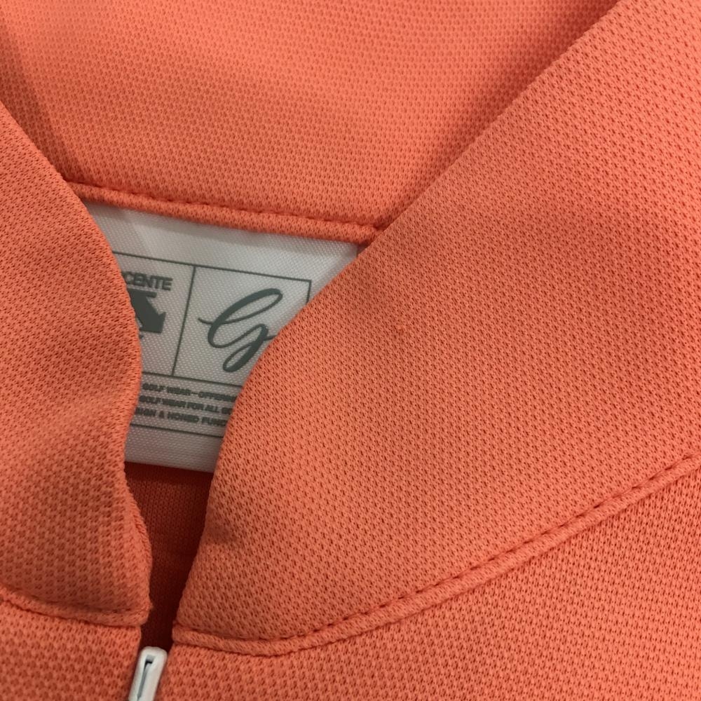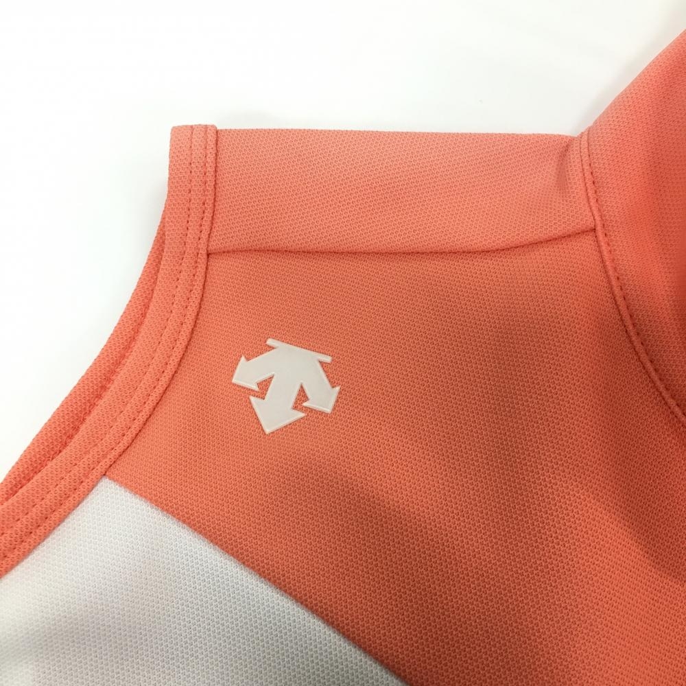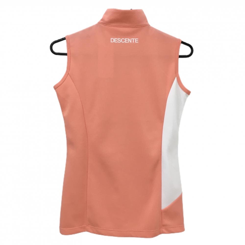 【新品】デサントゴルフ ノースリーブポロシャツ サーモンピンク×白 ハーフジップ 中田英寿 レディース M ゴルフウェア DESCENTE
