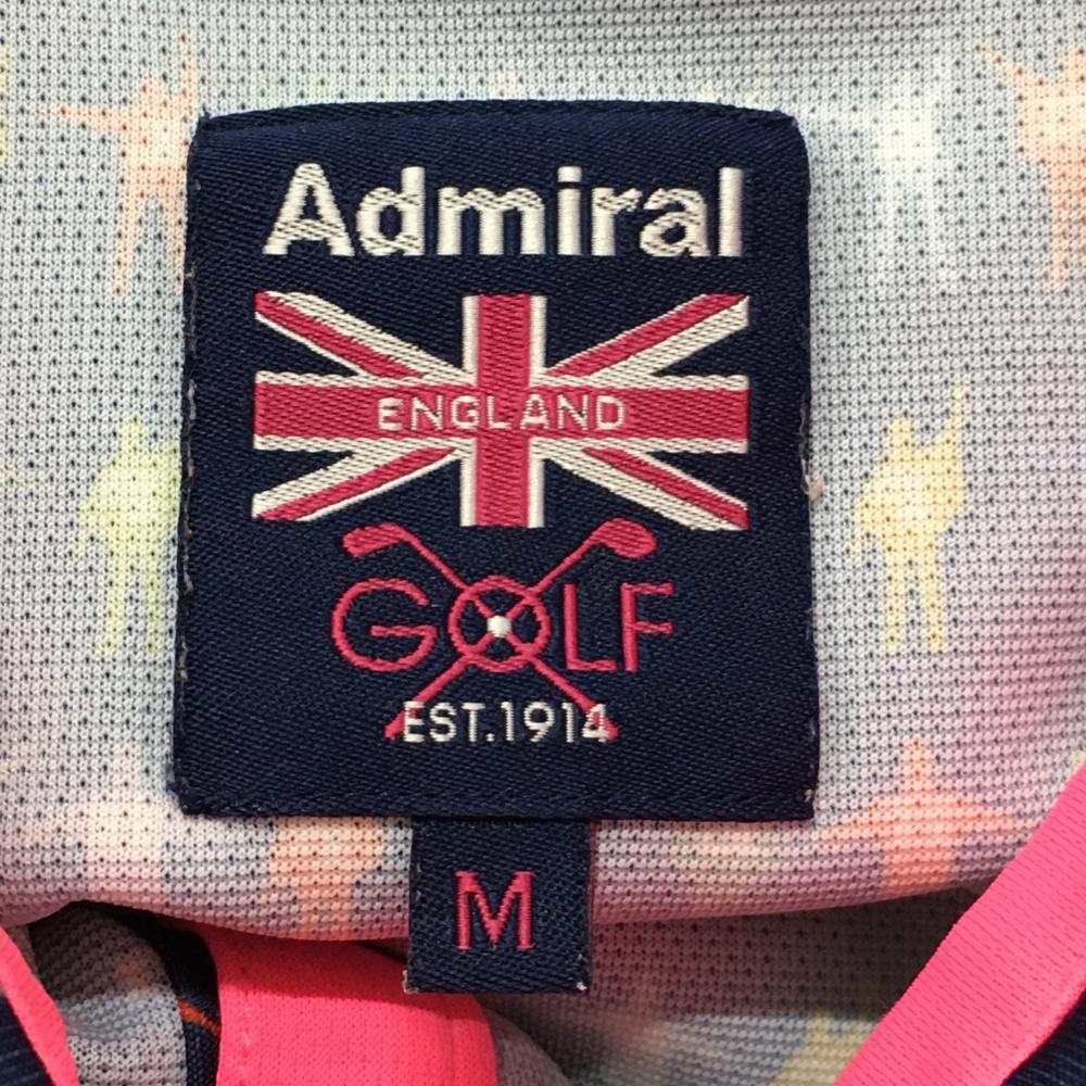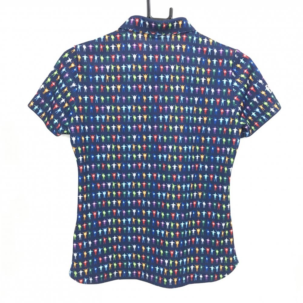 【超美品】アドミラル 半袖ポロシャツ ネイビー×マルチカラー 総柄 ビートルズ レディース M ゴルフウェア Admiral