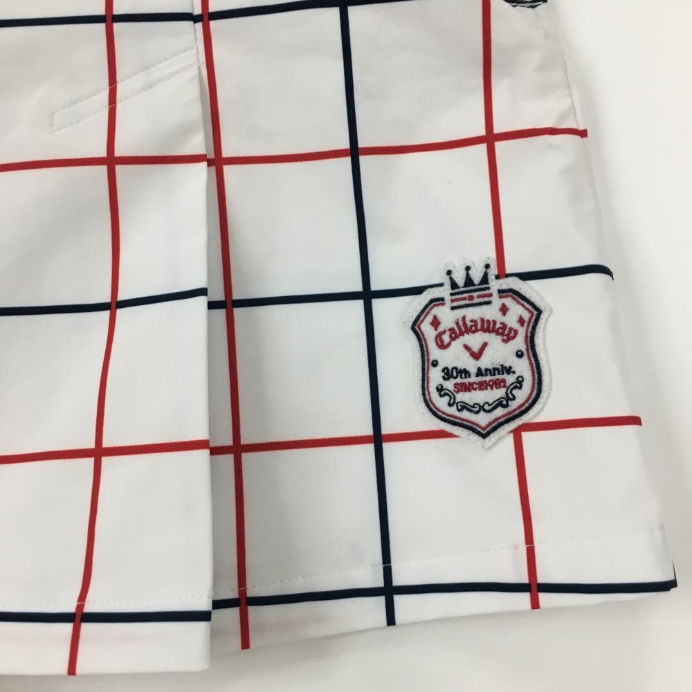 キャロウェイ スカート 白×レッド 格子柄 ロゴワッペン レディース M ゴルフウェア Callaway