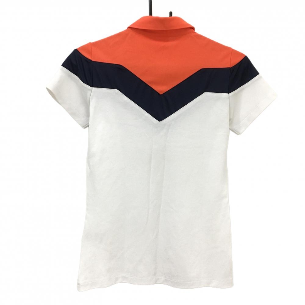 デサントゴルフ 半袖ポロシャツ オレンジ×白 肩ロゴ 中田英寿 レディース M ゴルフウェア DESCENTE