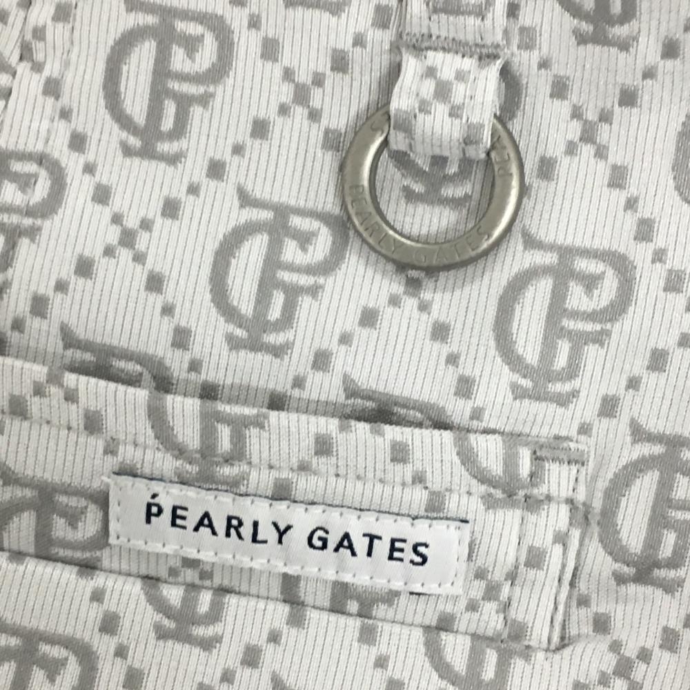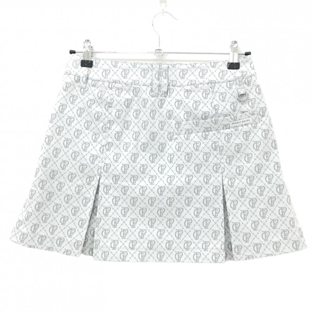 【超美品】パーリーゲイツ スカート 白×グレー ロゴ総柄 ボックスプリーツ レディース S ゴルフウェア 2024年モデル PEARLY GATES