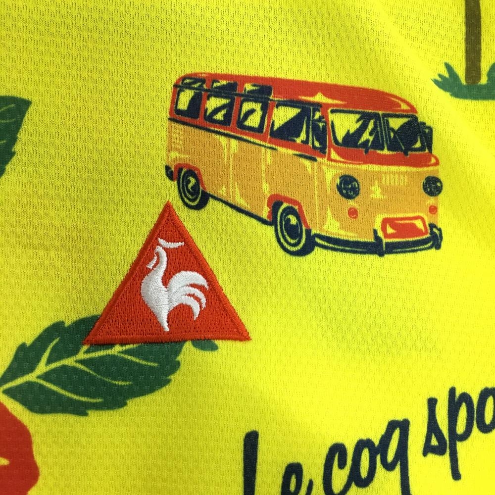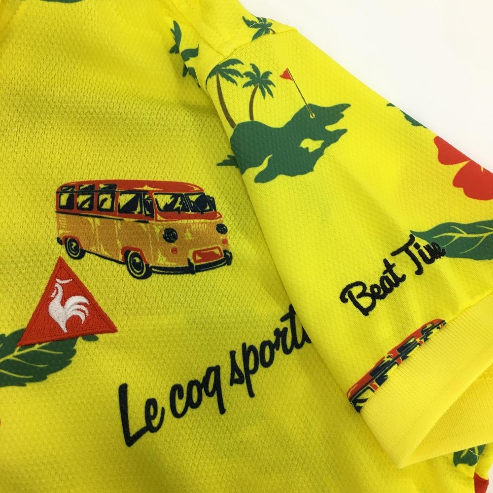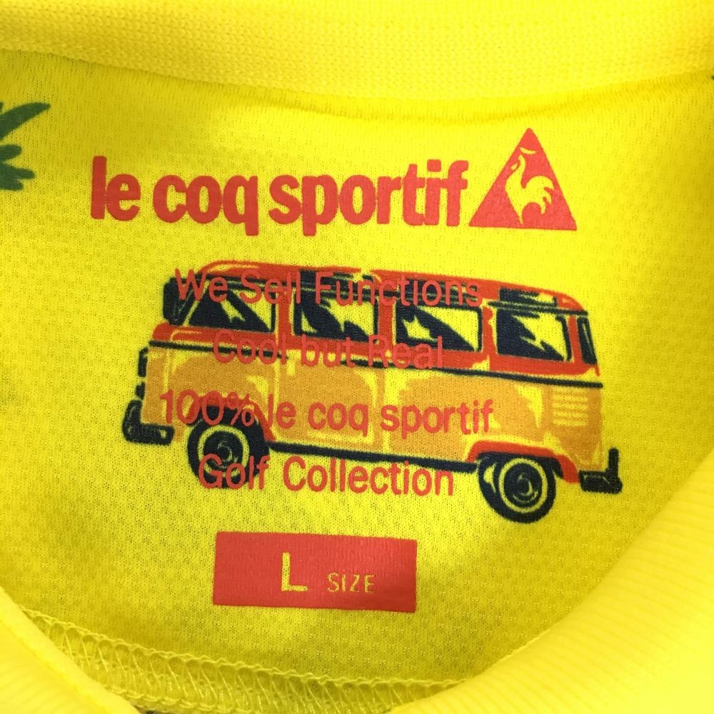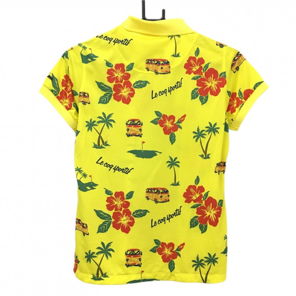 【超美品】ルコックゴルフ 半袖ポロシャツ イエロー×レッド 総柄 ハイビスカス バス レディース L ゴルフウェア le coq sportif