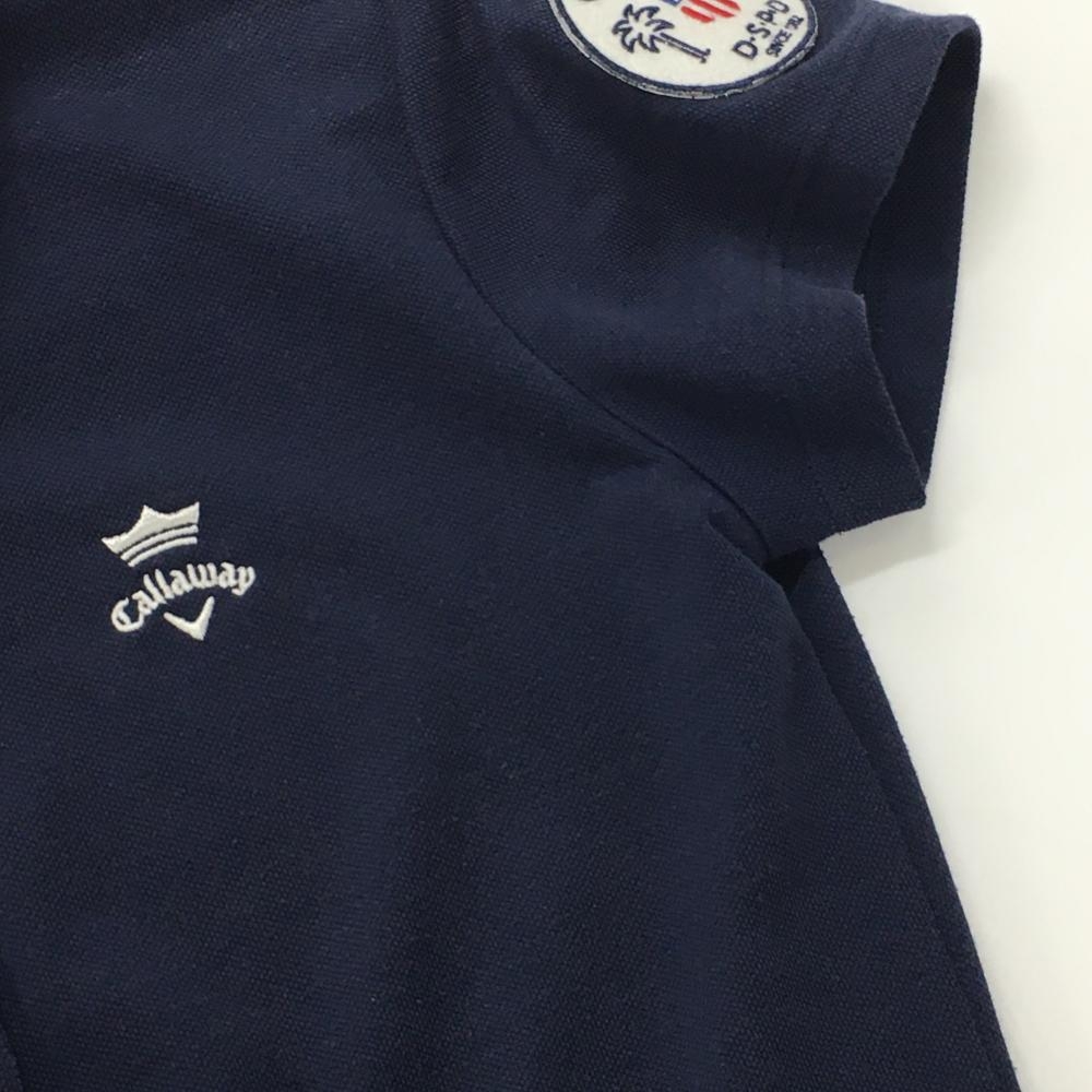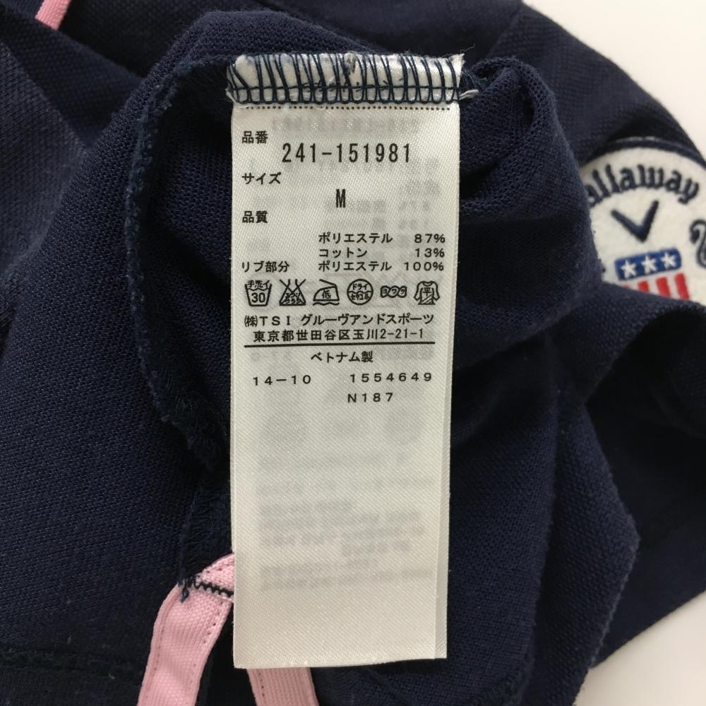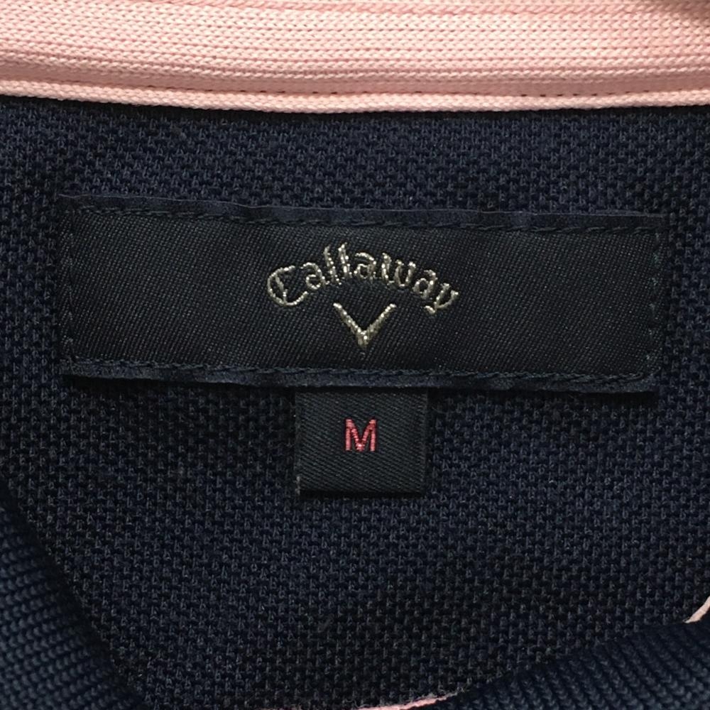 キャロウェイ 半袖ポロシャツ ネイビー×ピンク 袖ワッペン レディース M ゴルフウェア Callaway