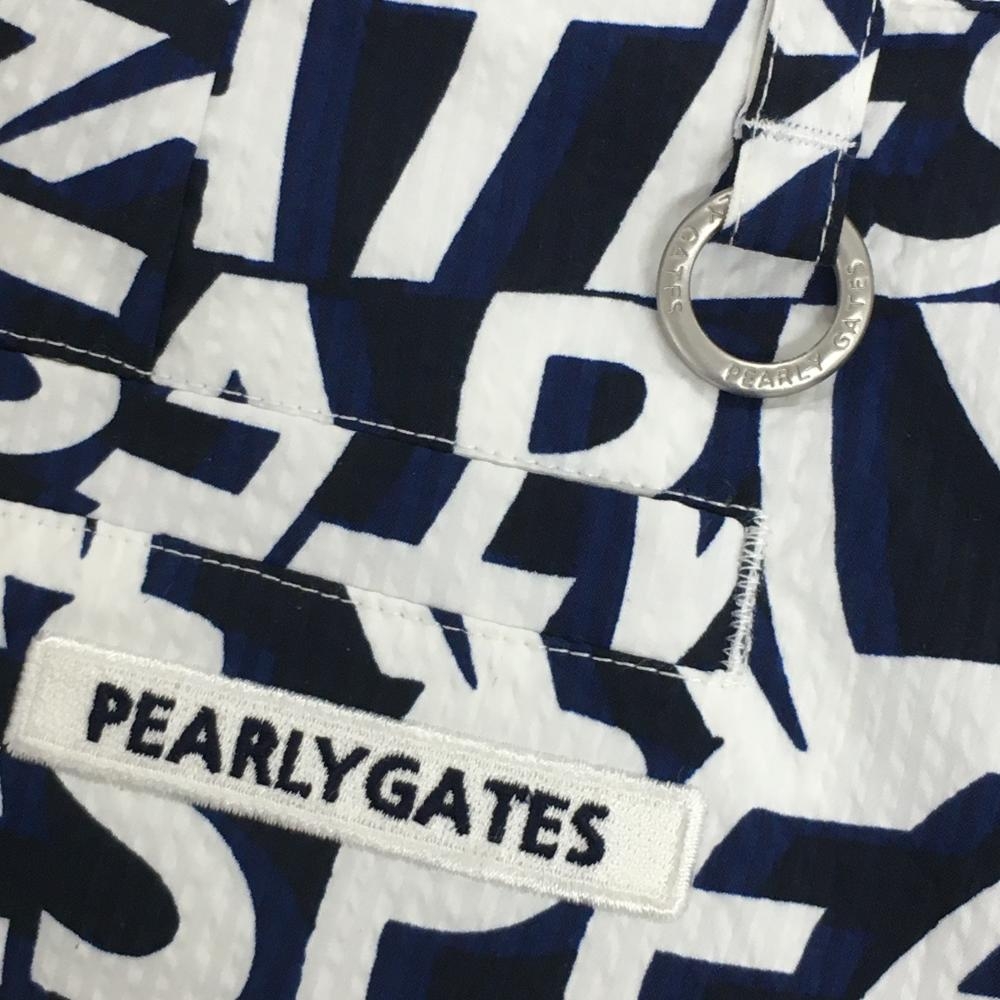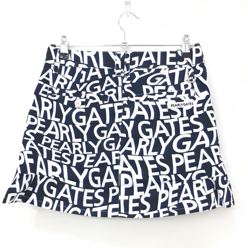【超美品】パーリーゲイツ スカート ブルー×ネイビー×白 ロゴ総柄 サッカー生地 レディース 1(M) ゴルフウェア PEARLY GATES