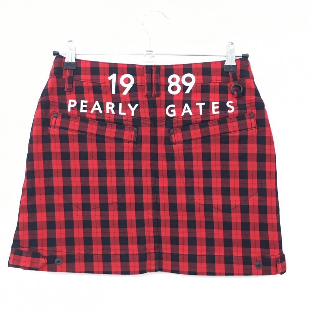 【超美品】パーリーゲイツ スカート レッド×黒 チェック ストレッチ レディース 0(S) ゴルフウェア PEARLY GATES