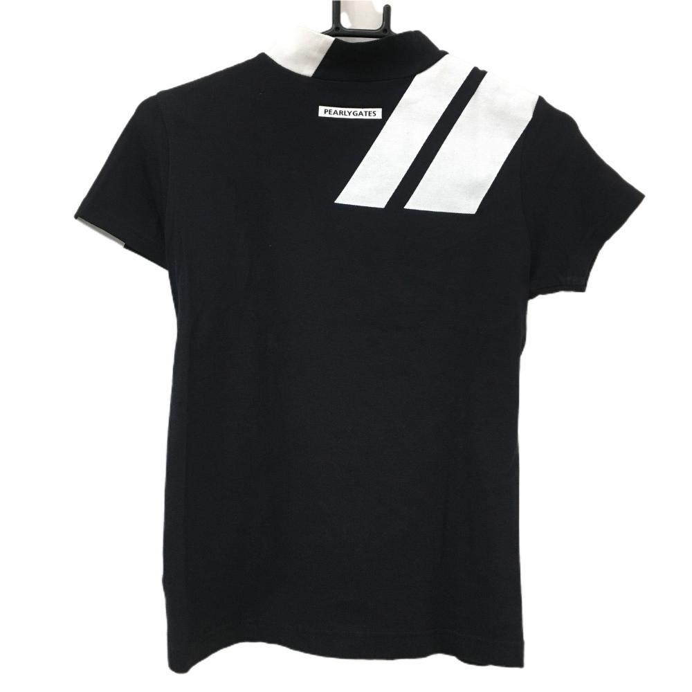 パーリーゲイツ 半袖ハイネックシャツ 黒×白 肩斜めライン レディース 0(S) ゴルフウェア PEARLY GATES