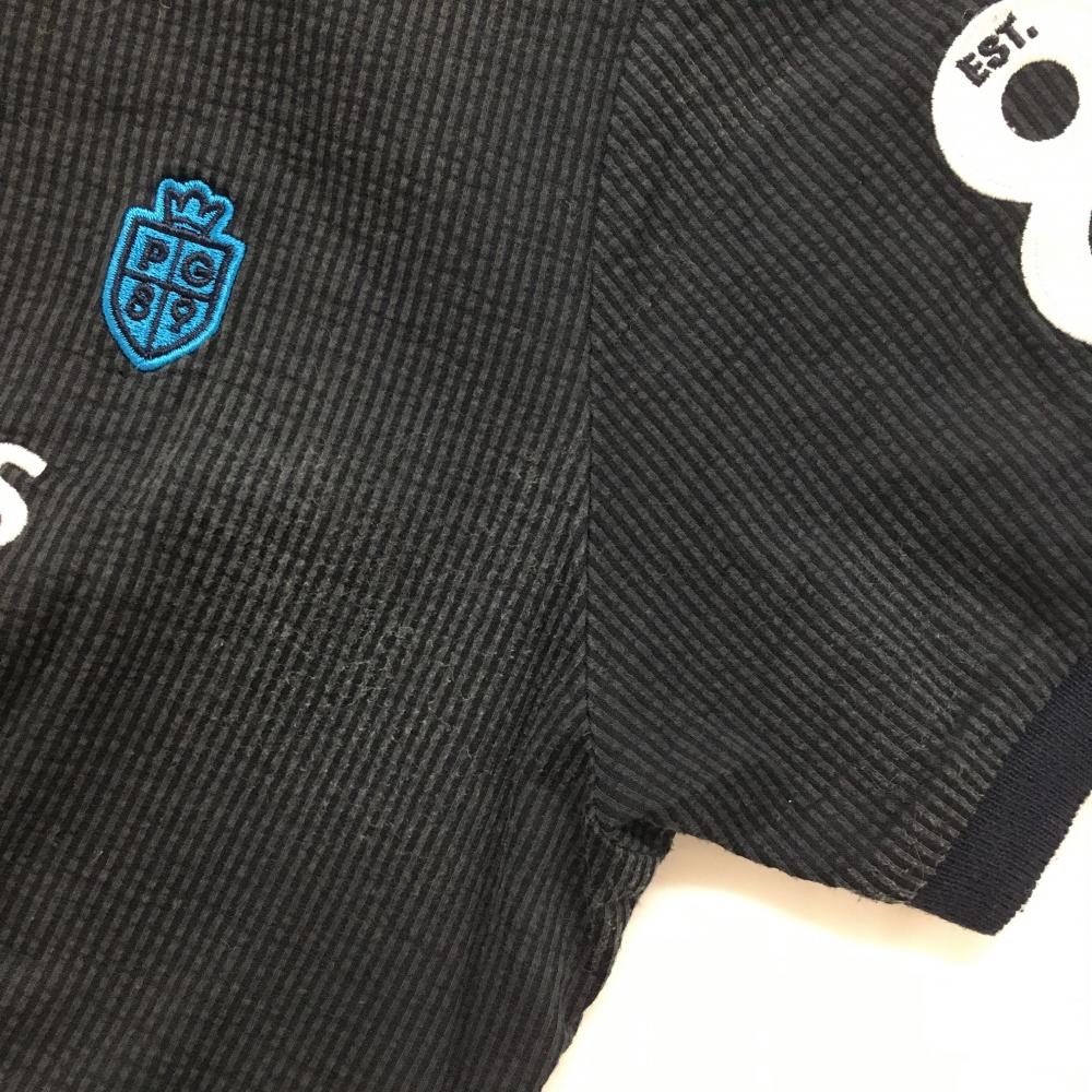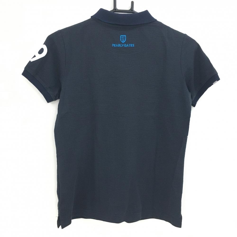 パーリーゲイツ 半袖ポロシャツ 黒×グレー 細目ストライプ レディース 0(S) ゴルフウェア PEARLY GATES