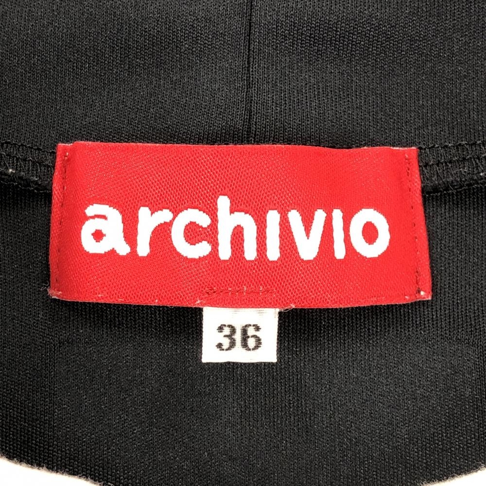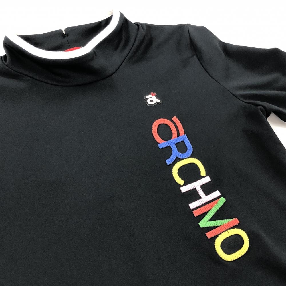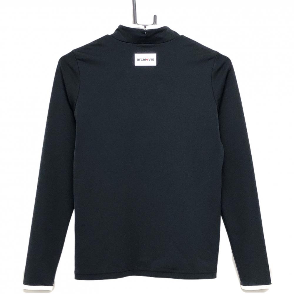 【美品】アルチビオ 長袖ハイネックシャツ 黒×白 ロゴ刺しゅう レディース 36(S) ゴルフウェア archivio